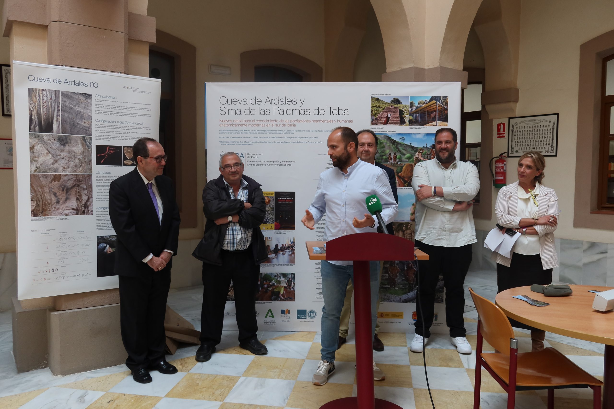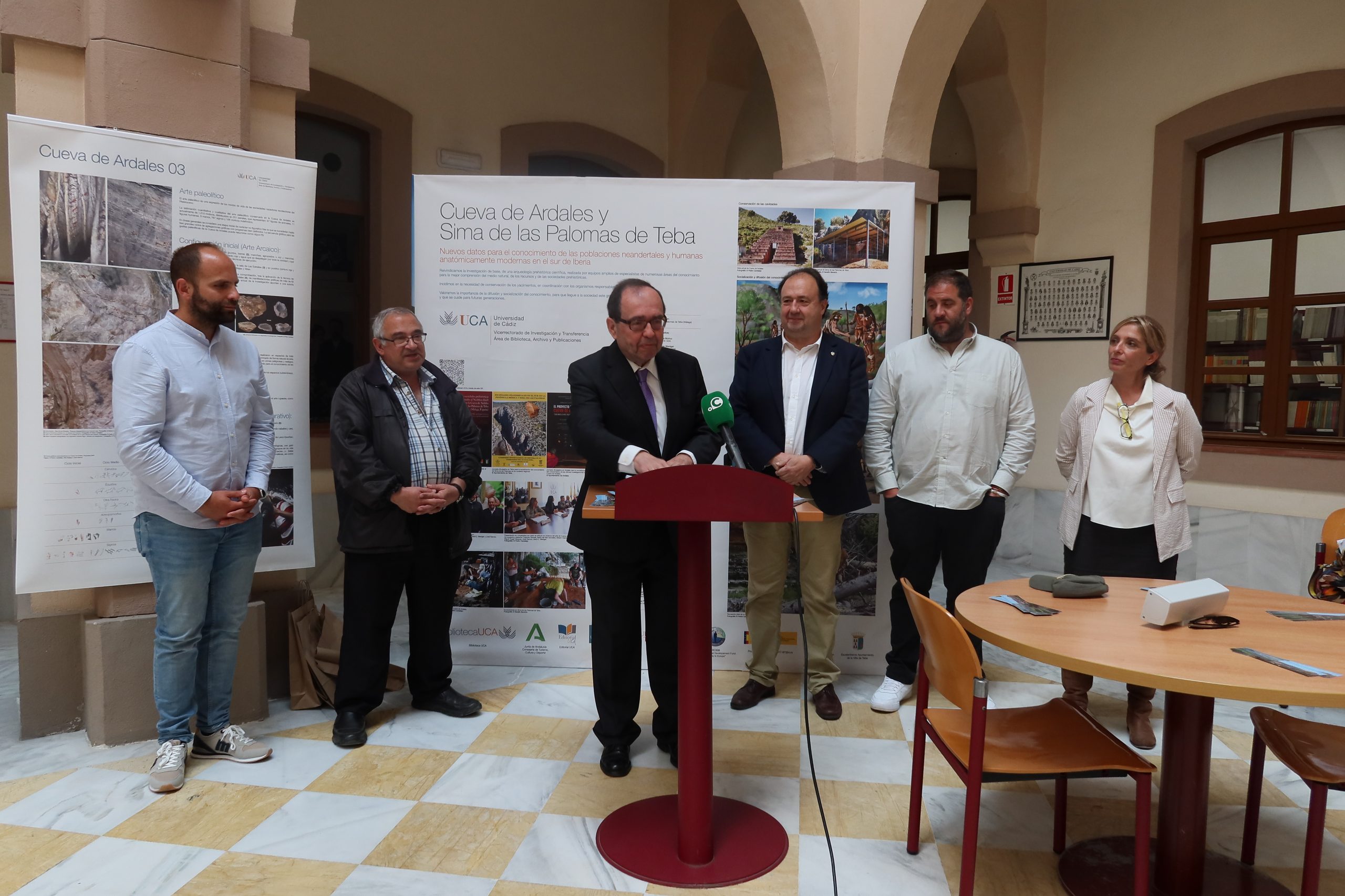 El rector de la Universidad de Cádiz, Casimiro Mantell, en compañía de los alcaldes de Ardales, Juan Alberto Naranjo, y de Teba, Cristóbal Corral, de la vicerrectora de Investigación y Transferencia, M.ª Jesús Ortega, el decano de la Facultad, Arturo Morgado, el catedrático de Prehistoria, José Ramos, y la directora de Editorial UCA, Elena Cuasante, ha presidido el acto inaugural. Ha contado con la presencia del doctor Honoris Causa de la UCA, el arqueólogo Francisco Giles, de investigadores, profesorado y alumnado de diferentes departamentos y facultades, personal de Biblioteca y del Servicio de Publicaciones de la UCA.