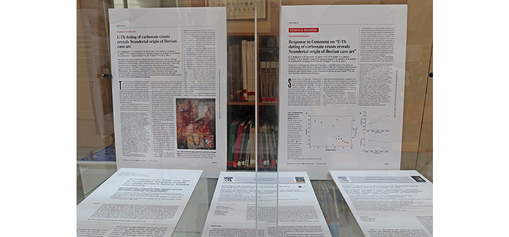 Se completa la muestra con reproducciones en papel de las primeras páginas de los artículos publicados en revistas internacionales de prestigio y con libros y monografías científicas y divulgativas generadas en la investigación de ambas cuevas.