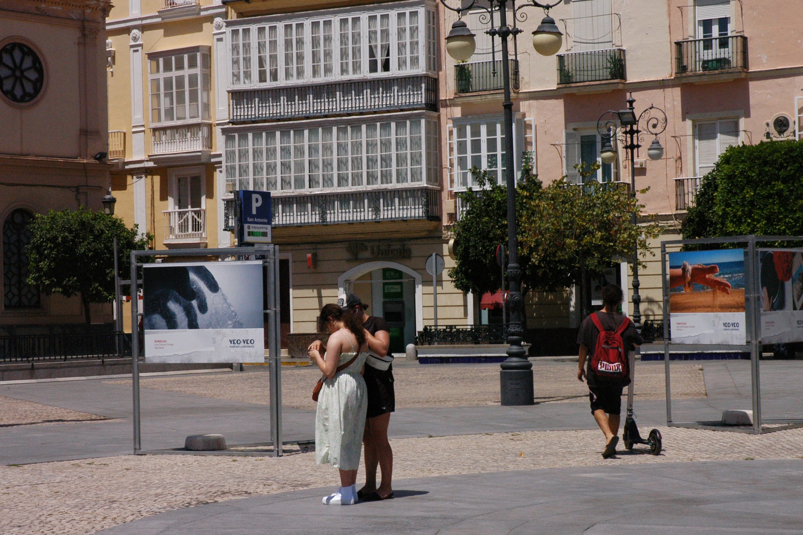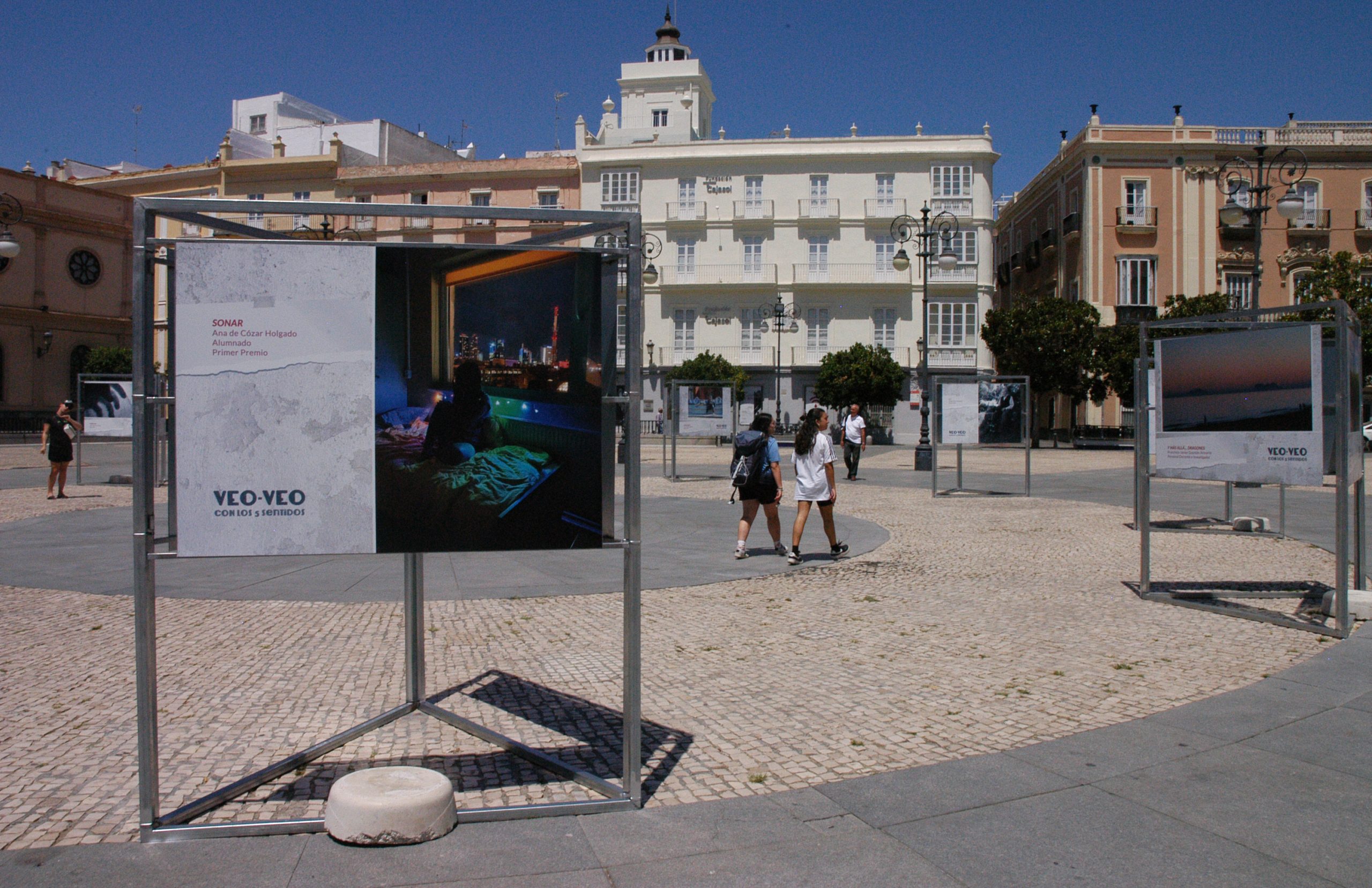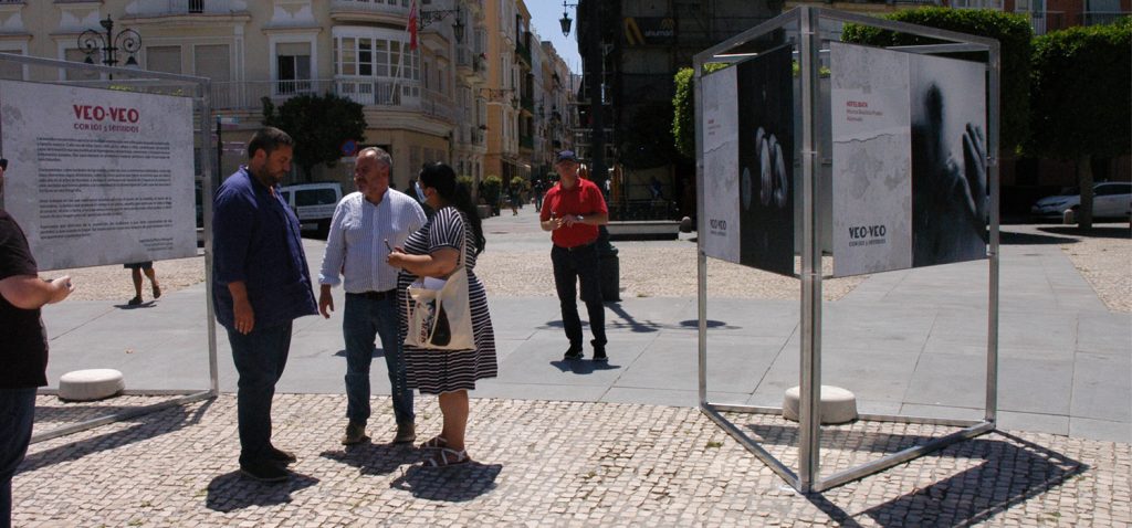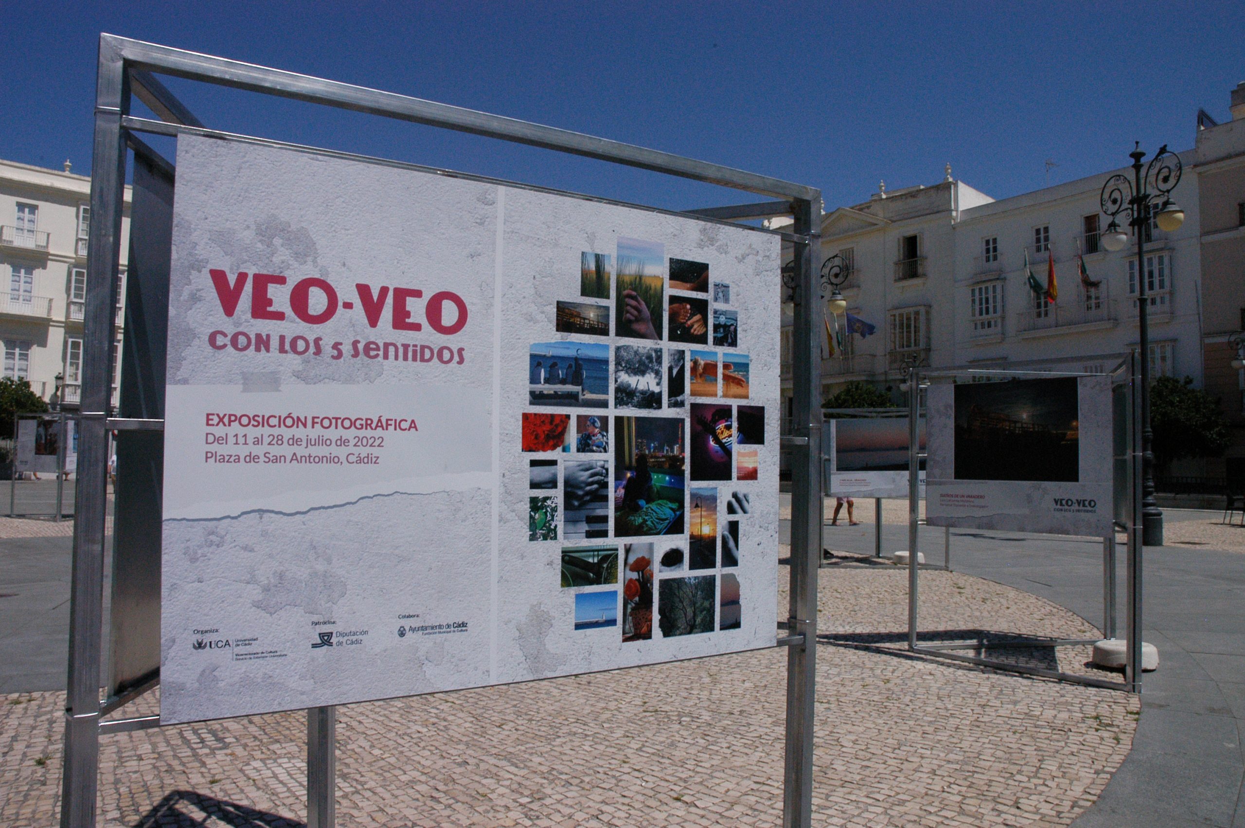 El vicerrector de Cultura de la Universidad de Cádiz, José María Pérez Monguió, en compañía de la concejala de Educación e Infancia y Contratación del Ayuntamiento de Cádiz, Ana Fernández, del diputado de Desarrollo de la Ciudadanía de la Diputación Provincial de Cádiz, Jaime Armario, y del director de secretariado de Acción Cultural y Deportes de la UCA, Román Nuviala, ha inaugurado este mediodía, en la plaza de San Antonio, la exposición fotográfica Veo-veo: Con los cinco sentidos, donde se podrá visitar hasta el próximo 28 de julio. A continuación, comenzará su itinerancia por el resto de ciudades de la provincia con campus universitario.