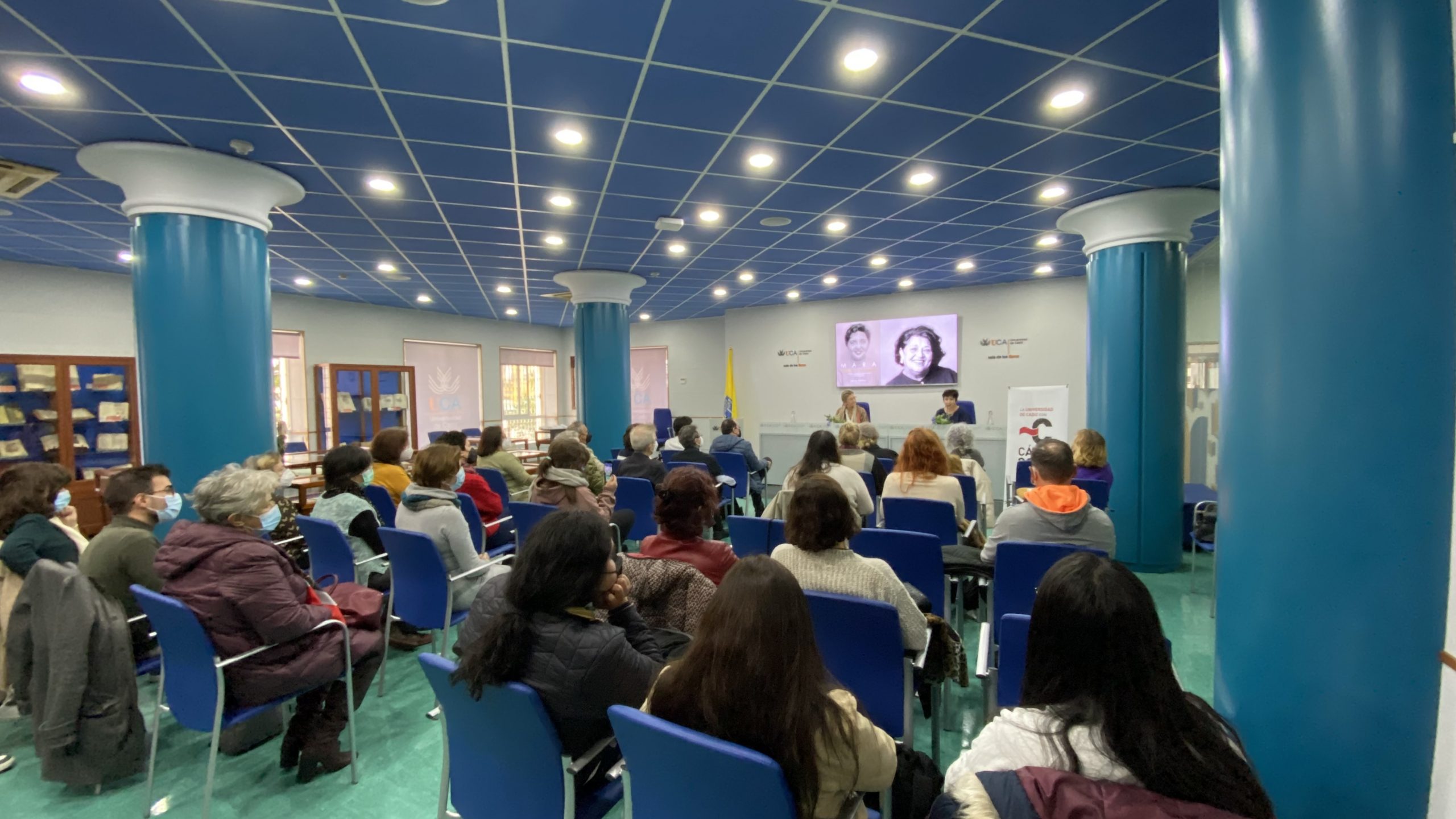 La sala de los Libros del edificio Andrés Segovia del Campus de Cádiz ha acogido la presentación de la nueva edición del primer poemario de Pilar Paz Pasamar: Mara. Editado por primera vez en 1951 y que congregó los elogios de los círculos literarios del momento, ahora se ha reeditado desde la editorial Torremozas. Su responsable, Marta Porpetta, acompañada por la profesora de la UCA, Ana Sofía Pérez Bustamante, ha explicado los detalles de esta publicación.