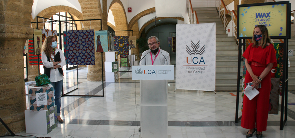 Wax: tejidos con historia se enmarca en el VII Plan de Divulgación de la Ciencia y del Conocimiento de la UCA. De carácter itinerante, tiene como objetivo visibilizar el trabajo que desde el departamento de Filología Francesa e Inglesa de la UCA se hace especialmente en relación a la escritura y cultura africana. La componen una veintena de paneles ilustrados, acompañados de trozos de estas telas, donde se explica de forma resumida su historia y significación. Se trata de piezas textiles alegres, vistosas y llenas de color que encierran a veces mensajes ocultos relativos a la cultura africana y su entorno más inmediato: la familia, el matrimonio, las tareas diarias o la naturaleza. El término Wax significa “cera” y proviene de ese tacto suave que tiene a diferencia al tejido que entonces se usaba más tieso y áspero.