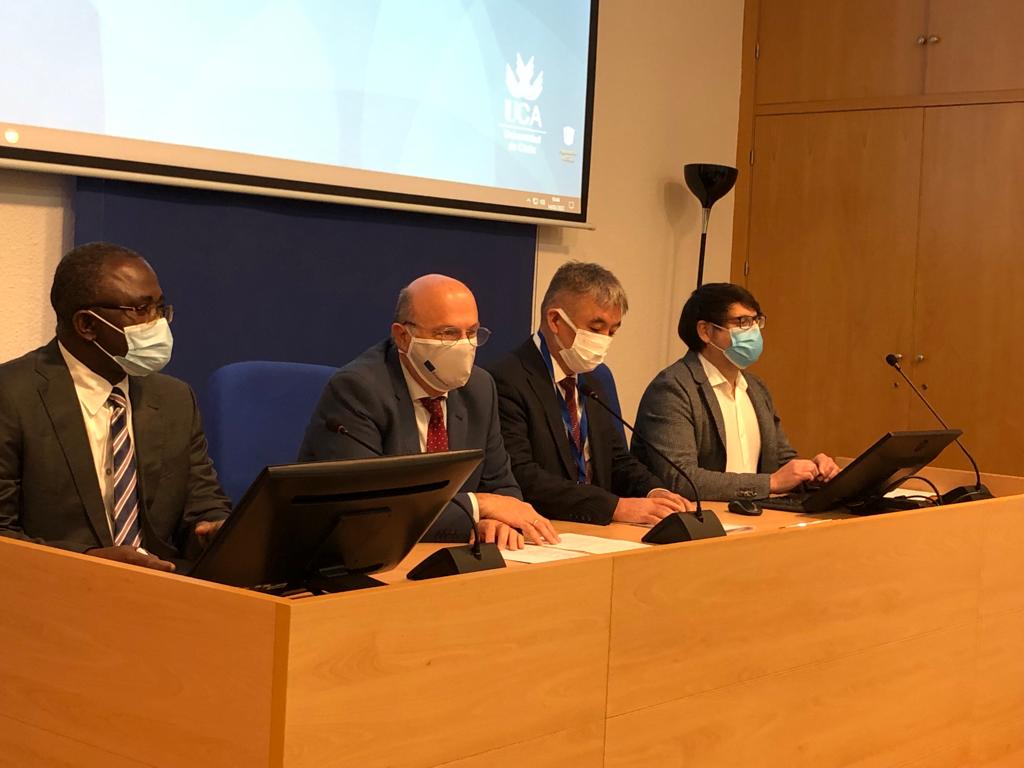 El vicerrector de Internacionalización de la UCA ha recordado la importancia de esta actividad que reanuda la actividad presencial de Internacionalización en la Universidad de Cádiz y que cuenta con una rica representación de varios continentes. Entre sus proyectos, están planificando nuevas acciones como la futura semana de la UCA en África, colaborar en un campus inclusivo y en la necesidad de trabajar desde la universidad por la paz. Los rectores de Félix Houphouët-Boigny y Osh State han agradecido la invitación a este encuentro internacional en Cádiz, han puesto en valor las relaciones en materia docente, científica y de movilidad que mantienen con la UCA y han recordado que para sus respectivas instituciones académicas es muy importante compartir conocimientos y experiencias en este campo internacional y acercar la lengua y cultura española a su comunidad universitaria.