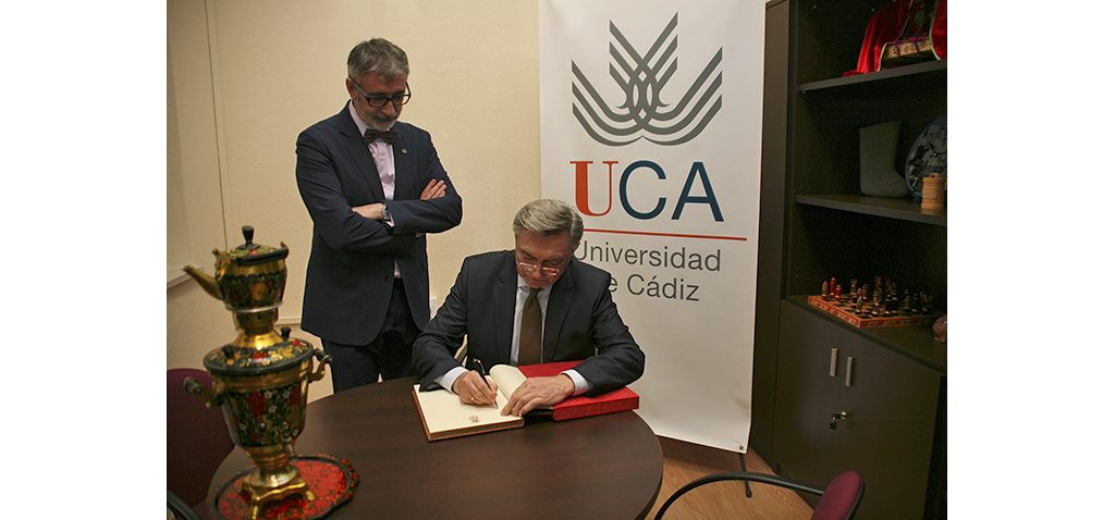Para el embajador de Rusia en España, ha señalado que es una oportunidad única en el marco del 40º aniversario de la Universidad de Cádiz la creación del primer Instituto Pushkin y de su Biblioteca. Un hecho que “fortalecerá las relaciones culturales, los trabajos científicos entre sus investigadores y favorecerá la intensidad de movilidad e intercambio entre las universidades de ambos países”. Por último, el diplomático ruso ha hecho entrega al coordinador del CUNEAC, Andrés Santana, de una condecoración por “su defensa y divulgación permanentes de la lengua y la cultura rusas en España” y concretamente, desde la Universidad de Cádiz.