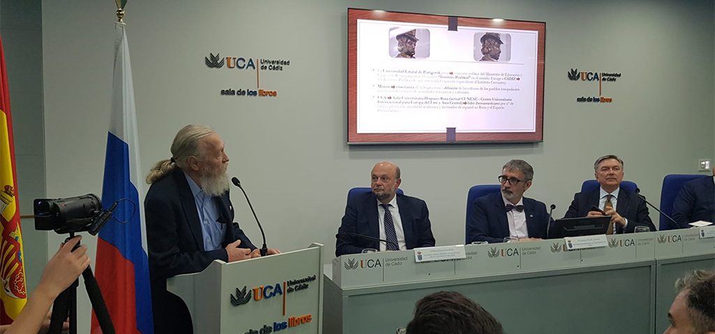 Piniella ha dado la enhorabuena a todas las personas, vicerrectorados y áreas de la Universidad de Cádiz que lo han hecho posible, así como a las instituciones externas involucradas en la realidad de este proyecto (Universidad Estatal de Piatigorsk, Fundación de Alexander Pushkin de Madrid, Centro Ruso de Madrid, Embajada de Rusia en España y Banco Santander, entre otros). Ha recordado que el trabajo continuado durante todos estos años tiene su recompensa. En este sentido, apuntó que la UCA se sitúa como “la primera universidad española en colaboraciones docentes y culturales con universidades de los países de Europa del Este y Asia Central. Así lo corrobora, por ejemplo, la última convocatoria del programa Erasmus K107 de 2019, donde es la institución universitaria líder en España tanto en presupuesto como en movilidades. Y, en este marco de movilidad universitaria del Erasmus K107 con estados no pertenecientes a la UE, alcanzan un protagonismo muy especial, sin duda, Rusia, así como otros países de la región: Georgia, Ucrania, Kazajistán, Kirguistán y Turkmenistán”.