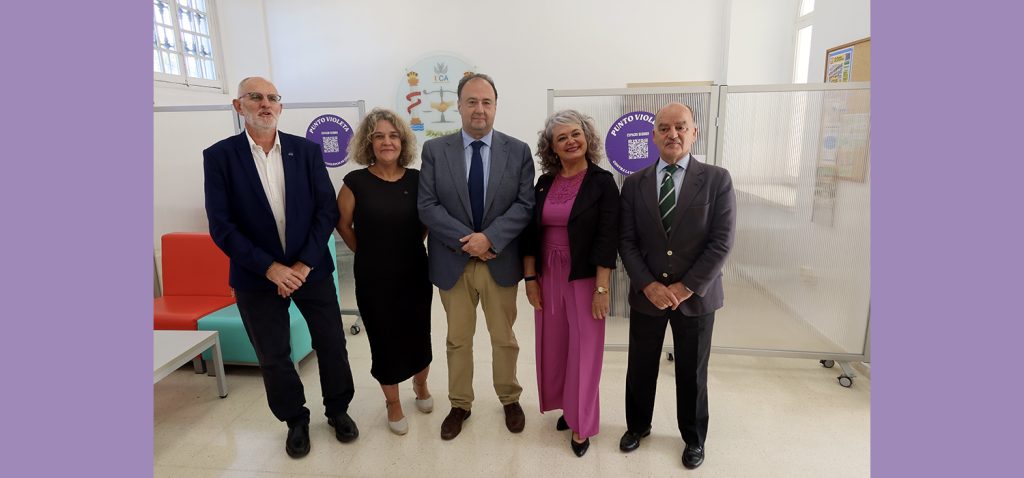 Esta iniciativa, fruto del trabajo de la UCA con la Subdelegación del Gobierno en Cádiz, tiene por objetivo facilitar toda la información y disponer de herramientas destinadas a la comunidad universitaria para la visibilidad de situaciones relacionadas con la violencia machista. El primer punto Violeta se inauguró el pasado mes de octubre en la Facultad de Medicina.