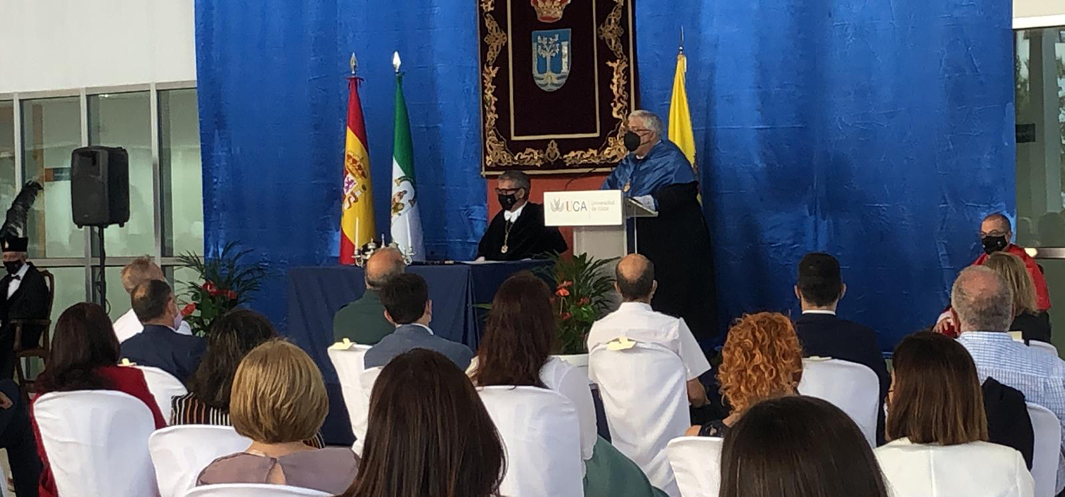El rector de la UCA les ha dado la enhorabuena y la bienvenida al Claustro. Ante las circunstancias especiales de esta edición, Francisco Piniella ha comenzado con un mensaje alentador y optimista: “nos hemos reinventado, adaptando el protocolo inveterado y el ritual universitario a las restricciones de la pandemia. Hemos cambiado la última semana de enero por la tercera de junio, el interior de un salón de Actos por este patio del Campus de Jerez, el llamamiento e investidura individual por una auto-investidura colectiva… Ahora bien, tres cosas han permanecido inalterables o, incluso, reforzadas y multiplicadas: la ilusión, el mérito y la gratitud”. De este modo, les ha felicitado porque pese a los obstáculos y desavenencias de esta época, gracias a su sacrificio y tesón – “tras superar todos los requisitos académicos y científicos” – han llegado a la graduación como doctores y doctoras. De la misma forma, ha continuado, que “nuestra sociedad empieza a salir de la sombra de una pandemia, que nadie supo ver a tiempo, pero que todos avizoramos cuál era la única puerta de salida, la única solución posible: la ciencia”.