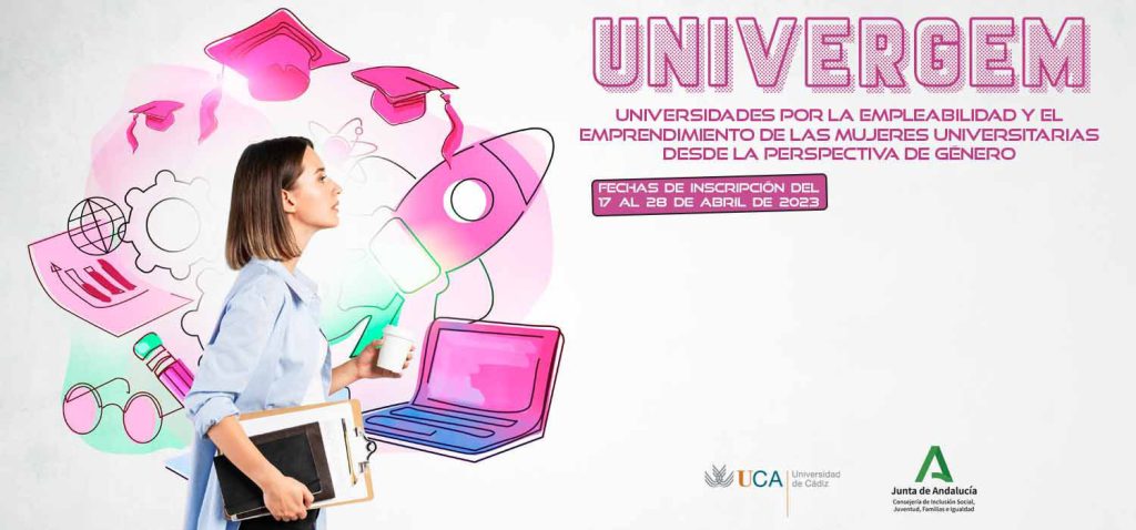 El Vicerrectorado de Estudiantes y Empleo de la Universidad de Cádiz, a través del Centro de Promoción de Empleo y Prácticas, informa de la puesta en marcha del programa UNIVERGEM 2023 con el apoyo del Instituto Andaluz de la Mujer de la Consejería de Inclusión Social, Juventud, Familias e Igualdad de la Junta de Andalucía. Las inscripciones para esta iniciativa, que se dirige a universitarias de la UCA para mejorar su empleabilidad, se pueden presentar hasta el próximo 28 de abril vía CAU