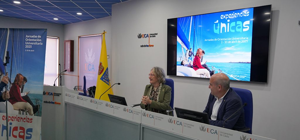 La vicerrectora de Estudiantes de la Universidad de Cádiz, Nuria Campos, y el director general de Acceso y Orientación, Alejandro Pérez, han presentado esta mañana las XV Jornadas de Orientación Universitaria, que se desarrollarán del 2 al 10 de abril. La iniciativa está dirigida a estudiantes de 2ºde Bachillerato y Ciclos Formativos de Grado Superior de la provincia, que el próximo curso 2025/2026 se incorporarán al sistema universitario.