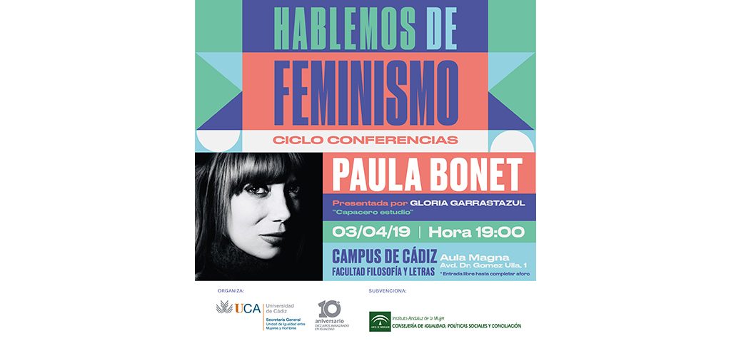 El Ciclo se estructura en cuatro ponencias. La escritora, pintora e ilustradora española, Paula Bonet, protagonizará la primera de ellas, que se celebrará el próximo miércoles 3 de abril, a las 19 horas, en la Facultad de Filosofía y Letras del Campus de Cádiz. El 30 del mismo mes y a la misma hora, pero esta vez en el salón de Grados del edificio Seminarios y Despachos del Campus de Jerez, vendrá como invitada a la magistrada, socia fundadora y vocal de la Asociación de Mujeres Juezas de España, Lucía Avilés.