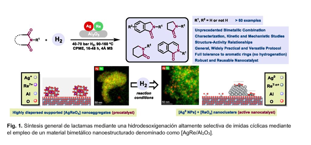 Referencia Bibliográfica: Lluna-Galán, C., Arango-Daza, J.C., Gómez, D. et al. (2025) ‘Building lactams by highly selective hydrodeoxygenation of cyclic imides using an alumina-supported AgRe bimetallic nanocatalyst’. Nat. Commun. 16, 4119, https://doi.org/10.1038/s41467-025-59514-7