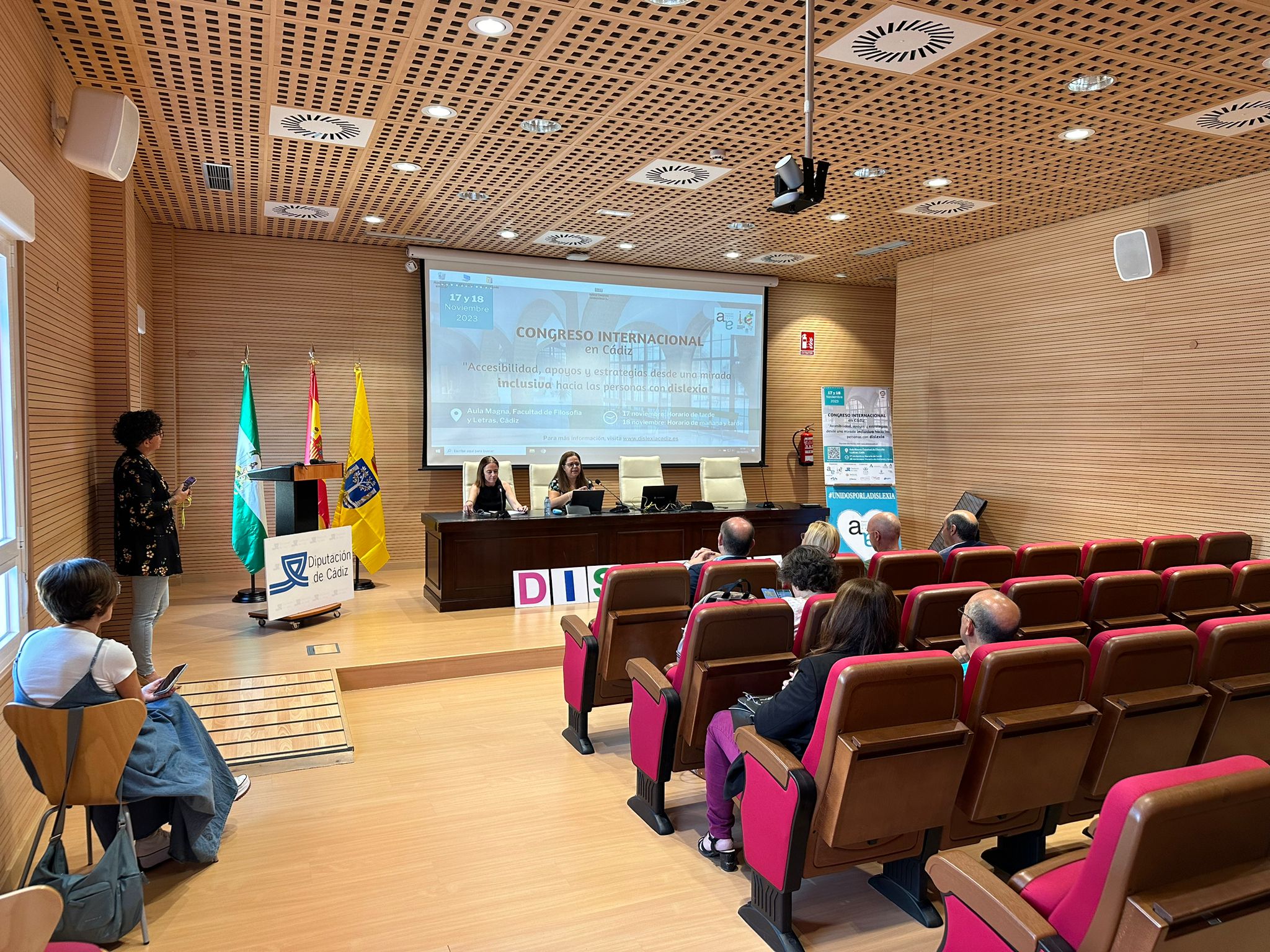 El Campus de Jerez de la Universidad de Cádiz ha acogido hoy, en el salón de Actos del Instituto de Desarrollo Social y Sostenible (INDESS), la presentación del Congreso Internacional en Cádiz: Accesibilidad, apoyos y estrategias desde una mirada inclusiva hacia las personas con dislexia. La delegada del Rector en funciones para las Políticas de Igualdad e Inclusión de la UCA, Mayka García, y la presidenta de la Asociación de Dislexia de Cádiz, Lucía Alcántara, han detallado su programa, que se desarrollará los próximos días 17 y 18 de noviembre en la Facultad de Filosofía y Letras en el Campus de Cádiz.
