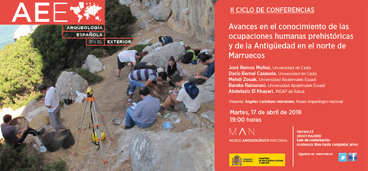 Investigadores de la Universidad de Cádiz participan hoy, a las 19 horas, en el II ciclo de conferencias sobre Arqueología española en el exterior del Museo Arqueológico Nacional (MAN) y el Instituto de Patrimonio Cultural de España en Madrid. Los catedráticos de Prehistoria y Arqueología de la UCA, José Ramos y Darío Bernal, respectivamente, presentarán los avances en el conocimiento de las ocupaciones humanas prehistóricas y de la Antigüedad en el norte de Marruecos.