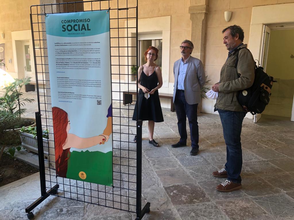 La Delegación del Rector de Responsabilidad Social y Corporativa de la Universidad de Cádiz ha elaborado una exposición con los principales resultados de la memoria de Responsabilidad Social y Sostenibilidad del curso 2020-2021. Un documento estratégico para acercar a la comunidad universitaria, que se puede consultar cada año en la web de la UCA. El rector de la UCA, Francisco Piniella, junto al delegado del Rector de Responsabilidad Social y Corporativa, Jacinto Porro, en compañía de la diseñadora, Gloria Garrastazul, ha presidido su presentación en el edificio Hospital Real.