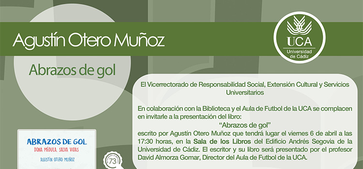 Al día siguiente, viernes 6, en el mismo sitio, pero a las 17,30 horas, en colaboración con el Aula de Fútbol de la UCA, se dará a conocer la obra Abrazos de gol de Agustín Otero.