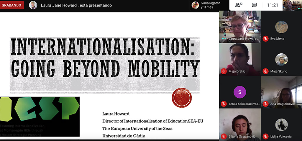 La Universidad de Cádiz ha organizado y acogido un webinar sobre planificación estratégica de la internacionalización en el marco del proyecto Erasmus+ Capacity Building Fostering Internationalisation at the Montenegrin HEIs through strategic planning– IESP.