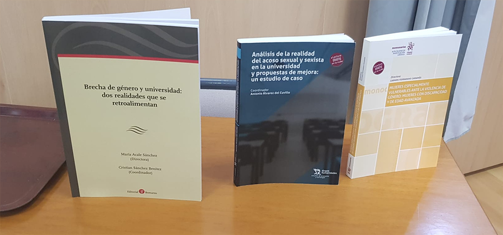 Se trata de: Análisis de la realidad del acoso sexual y sexista en la Universidad y propuestas de mejora: Un estudio de casos. Antonio Álvarez del Cuvillo (Coord.), Brecha de género y universidad: dos realidades que se retroalimentan. María Acale Sánchez (Dir.) y Mujeres especialmente vulnerables ante la violencia de género: Mujeres de edad avanzada y mujeres con discapacidad. Carmen Ferradans Caramés (Coord.)