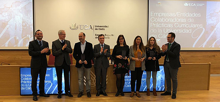 La Universidad de Cádiz ha hecho entrega de los sellos Empresa/Entidad Colaboradora de la UCA (participantes en las prácticas del alumnado de la UCA durante el último curso) y Empresa/Entidad Colaboradora Distinguida de la UCA (implicadas de forma consecutiva durante los últimos cuatro años).