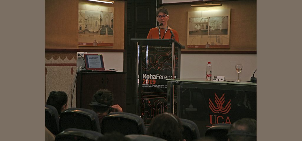 La jefa del servicio de Solicitud de Bibliotecas Jean Moulin de la Universidad de Lyon 3 (Francia), Sonia Bouis, ha ofrecido la primera conferencia titulada: Completing new projects in academic libraries with Koha: the case of Lyon 3 University.