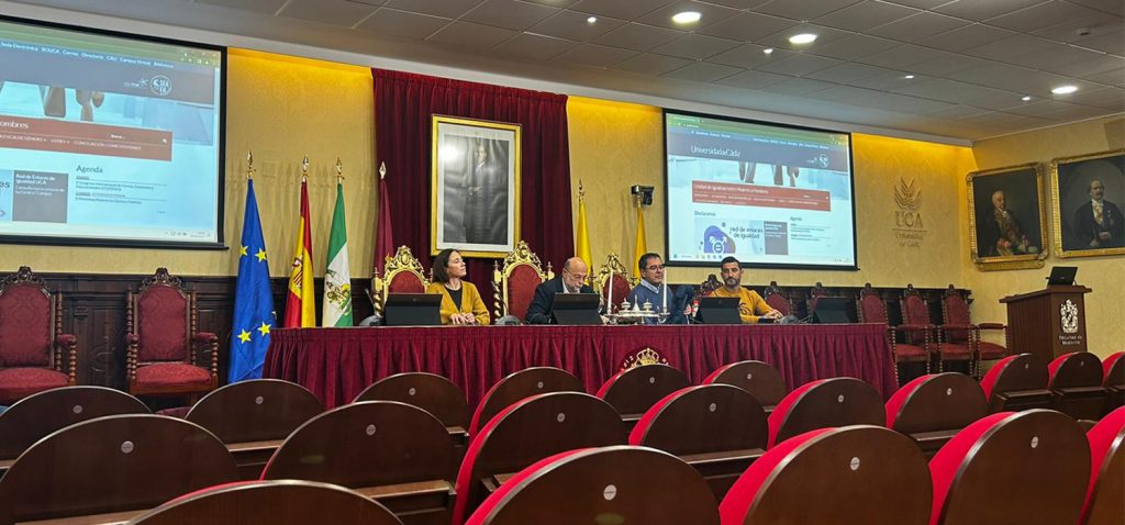 El Vicerrectorado de Internacionalización de la Universidad de Cádiz ha organizado un acto con la Delegación del Rector para las Políticas de Igualdad e Inclusión para informar a su alumnado internacional sobre la próxima fiesta del Carnaval en Cádiz. La Facultad de Medicina ha acogido este encuentro, con Rafael Jiménez Castañeda y Mayka García por parte de la UCA y el jefe de la Brigada Provincial de la Policía Judicial, Juan Ibáñez, y el oficial de Policía de la unidad de Familia y Mujeres de Cádiz, Francisco Bancalero.