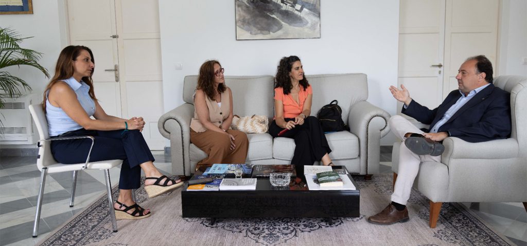 El encuentro ha estado encabezado por el rector de la UCA, Casimiro Mantell, y la directora general de Comunicación Estratégica, Leticia Rodríguez, por parte de la Universidad; y por la presidenta de la demarcación territorial en Cádiz, Lorena Mejías, y la vocal de Universidad, Vicky de Haro, por parte del Colegio.
