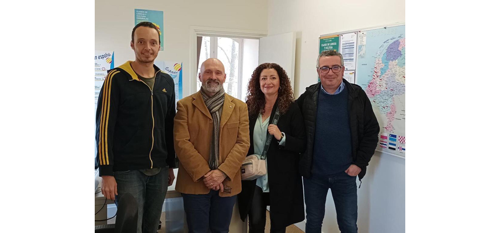 Una delegación de la Universidad de Cádiz, encabezada por el director General de Política Lingüística, Javier de Cos, junto a los coordinadores de Programas Internacionales del Centro Superior de Lenguas Modernas (CSLM), María Fernández y Arkaitz Errazkin, respectivamente, ha visitado recientemente los Países Bajos para establecer lazos colaborativos con el Instituto Cervantes de Utrecht. La directora del Instituto Cervantes en Países Bajos, Pilar Tena, les ha recibido en compañía del jefe de Estudios del centro español en Utrecht, Alberto Madrona, y del coordinador administrativo, Luis Campillo.