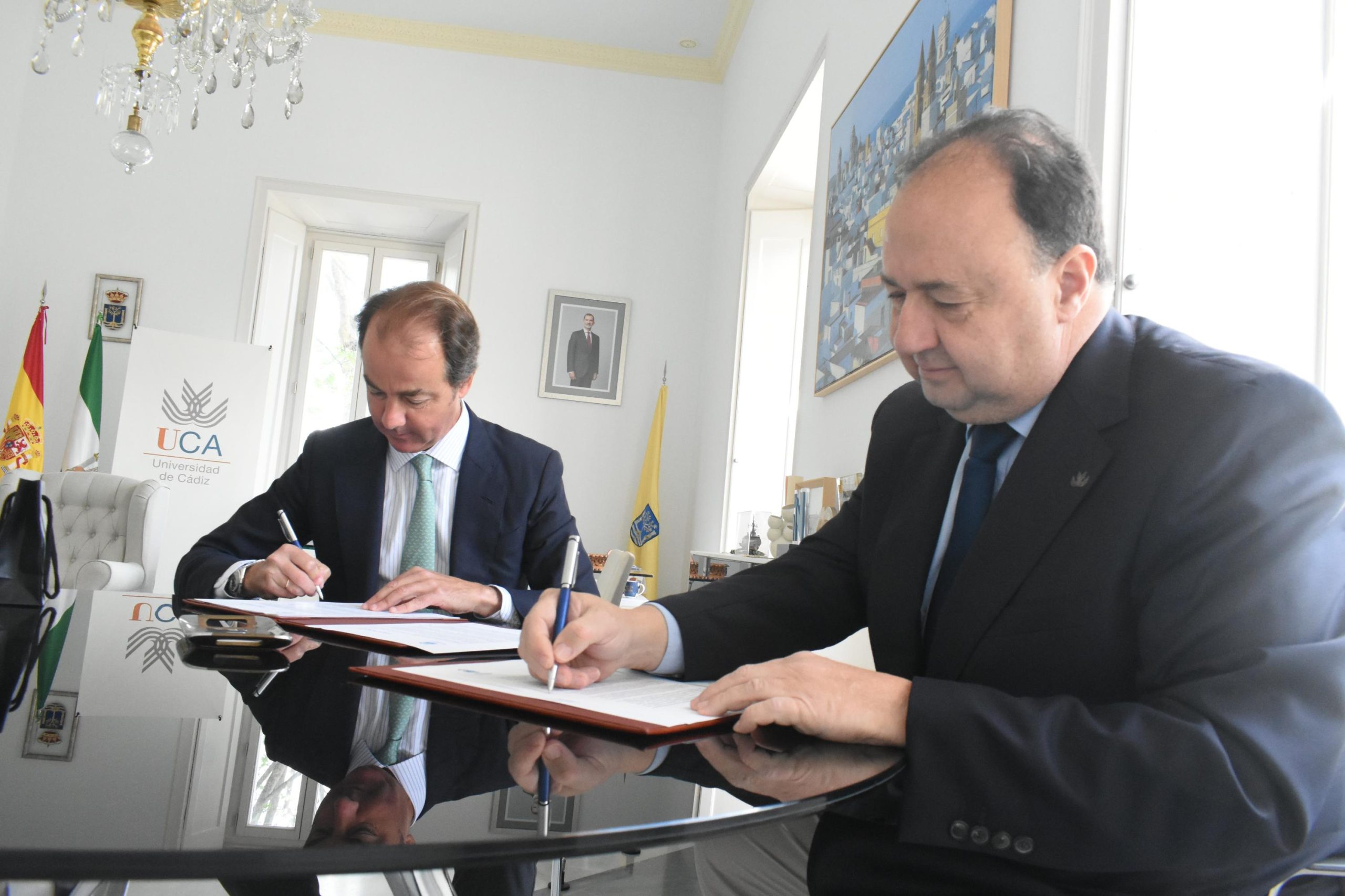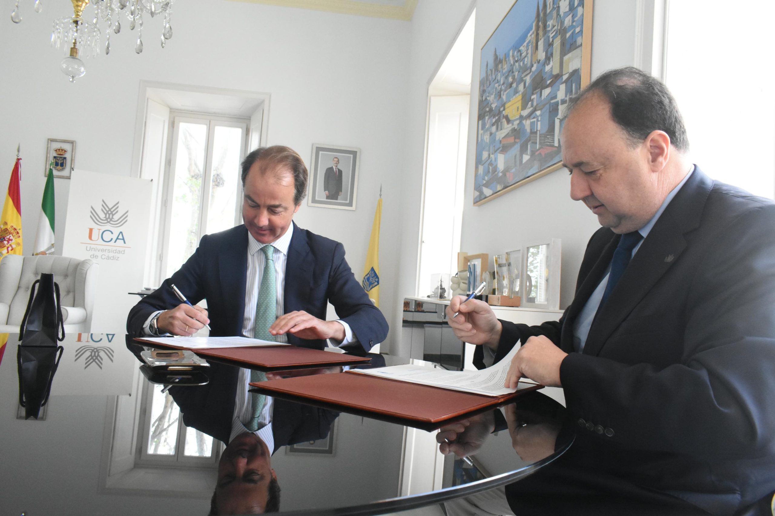 La Universidad de Cádiz y el grupo empresarial Grupo Solera S.L. han formalizado la creación de la nueva Cátedra UCA-Grupo Solera. El convenio, suscrito por el rector de la UCA, Casimiro Mantell, y el director general de Grupo Solera, Francisco Fernández García-Angulo, establece un marco de colaboración estable para fomentar la formación, investigación y transferencia de conocimiento en sectores estratégicos como la movilidad y la innovación tecnológica.