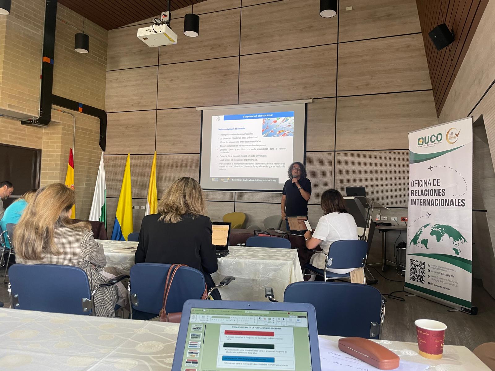A continuación, se mantuvo un encuentro con los representantes y profesores de las tres universidades colombianas sobre las posibilidades de cooperación en los estudios de doctorado a través de la cotutela y los convenios entre programas de doctorado, y los docentes de la UCA presentaron las diferentes líneas de investigación del programa de Doctorado.