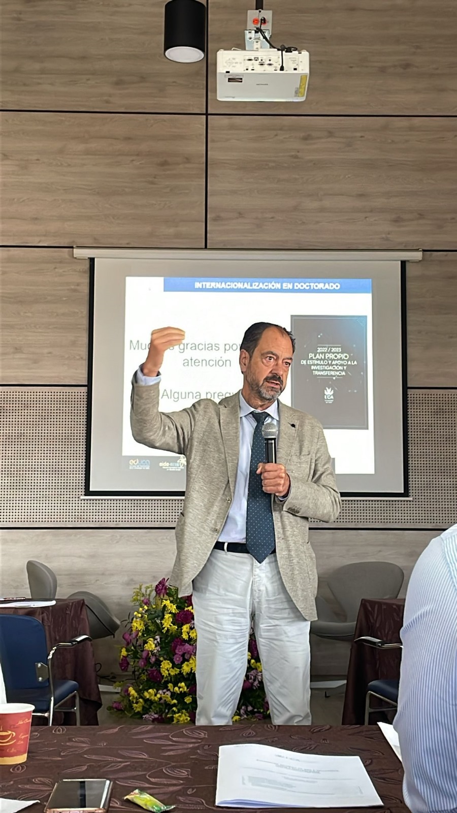 La segunda jornada comenzó con un debate en torno a la internacionalización del Doctorado en Derecho (tercera sesión). La decana de la Facultad de Derecho de la UCA, Isabel Zurita, y la vicedecana de Estudiantes y Movilidad, Leticia Cabrera, se refirieron al Plan de Internacionalización del Centro mientras que la profesora Amalia Blandino, secretaria de la Comisión Académica del Doctorado en Derecho, se centró en la dimensión internacional del Doctorado en Derecho. Por su parte, el director General de Planificación de Títulos, José María Biedma, abordó la cuestión de la internacionalización de los títulos y la oportunidad de colaboración que ofrecen los dobles títulos y los títulos internacionales. El director General de Doctorado, Luis Escoriza, y el secretario de la Escuela Internacional de Doctorado en Estudios del Mar (EIDEMAR), Juan Adolfo Chica, presentaron las Escuelas de Doctorado de la UCA: EDUCA y EIDEMAR.