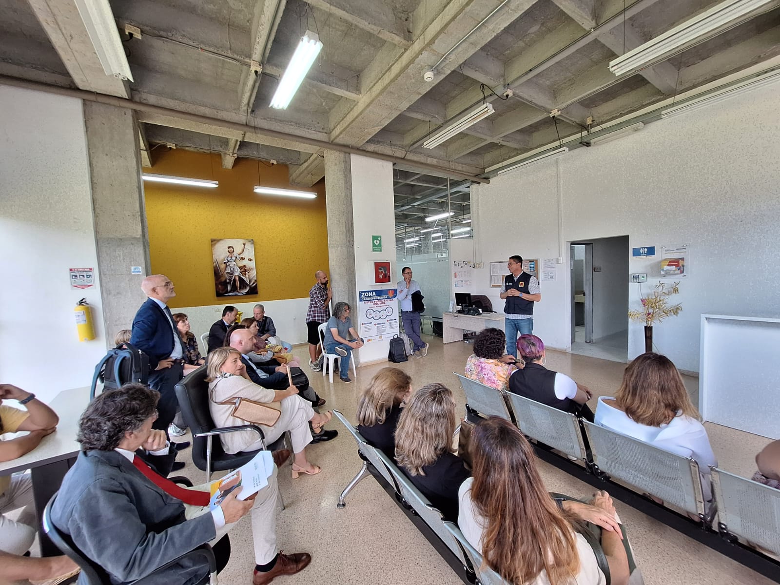 Por la tarde, se visitaron las instalaciones del Consultorio Jurídico y del Centro de Conciliación de Rionegro. Durante la visita, los coordinadores de las áreas de asesoría de civil, familia, comercial, penal, laboral y público, explicaron cómo desarrollan las prácticas de los estudiantes en los consultorios. A continuación, se visitó la Personería de Rionegro. El personero dio la bienvenida y explicó su funcionamiento, después la coordinadora de la entidad condujo a la delegación de la UCA en una ruta por todas sus dependencias.