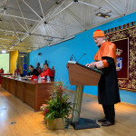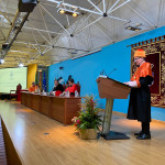 En su discurso de agradecimiento tras recibir la más alta distinción académica de la UCA, Gunter Pauli ha reconocido que le “apasiona las oportunidades que tenemos por delante” en relación con la Economía Azul con la finalidad “de inspirar a la próxima generación”. Un ámbito donde, ha señalado, “Cádiz es un territorio bien preparado” y “entre todos tenemos que buscar oportunidades sorprendentes”. Del mismo modo, ha comenzado preguntándose qué es exactamente la Economía Azul para detallar a continuación que se trata de “numerosas propuestas para un desarrollo económico en armonía con la Naturaleza. La principal propuesta es utilizar lo que está disponible localmente, convertir los recursos en valor, al tiempo que se responde a las necesidades locales y se crea resiliencia para todos con los que compartimos este planeta”. En este sentido, ha reconocido que “los océanos, que representan el 71% de la superficie terrestre, apenas generan el 5% del valor económico. Es evidente que existe un enorme potencial para hacerlo mejor. Sin embargo, no debemos considerar el mar y los océanos stricto senso, sino estudiar los grandes potenciales de la interfaz entre la tierra y el mar, las costas, y en particular estudiar cómo un enfoque innovador puede servir de gran impulso para el desarrollo y los medios de subsistencia “.