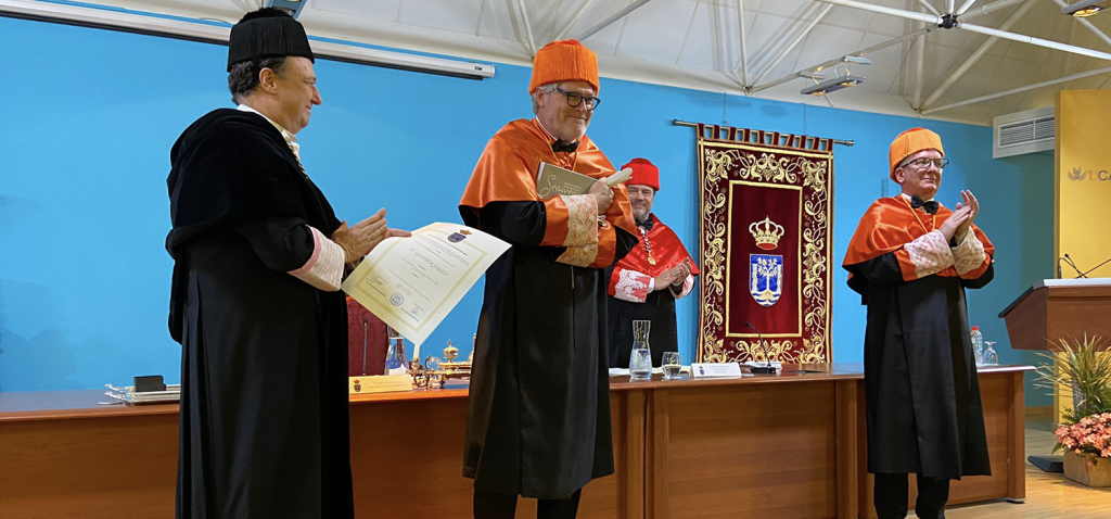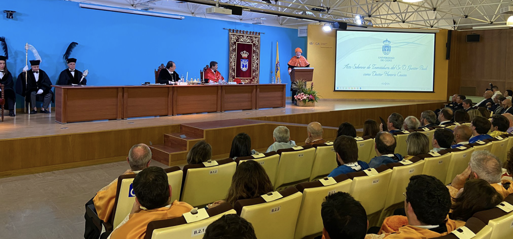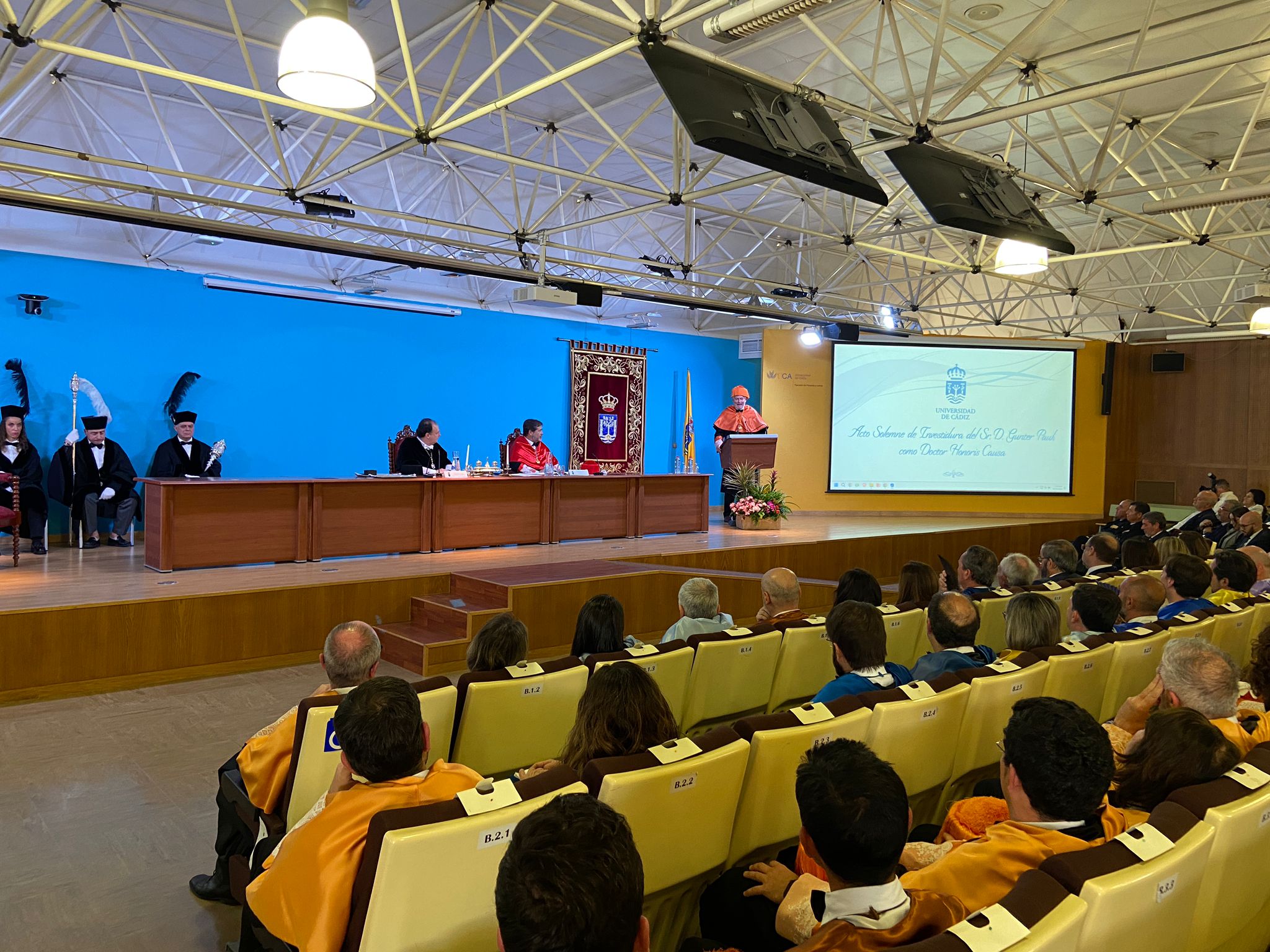 El Claustro de la Universidad de Cádiz, a propuesta del Consejo de Dirección de la UCA, ratificó el pasado mes de junio de 2023 la concesión del grado de doctor Honoris Causa a Gunter Pauli, propuesta aprobada por el Consejo de Gobierno en marzo de 2023, según establece el artículo 232 de los Estatutos de la UCA y el artículo 4º del Reglamento que regula el procedimiento para la concesión del grado de doctorado Honoris Causa.