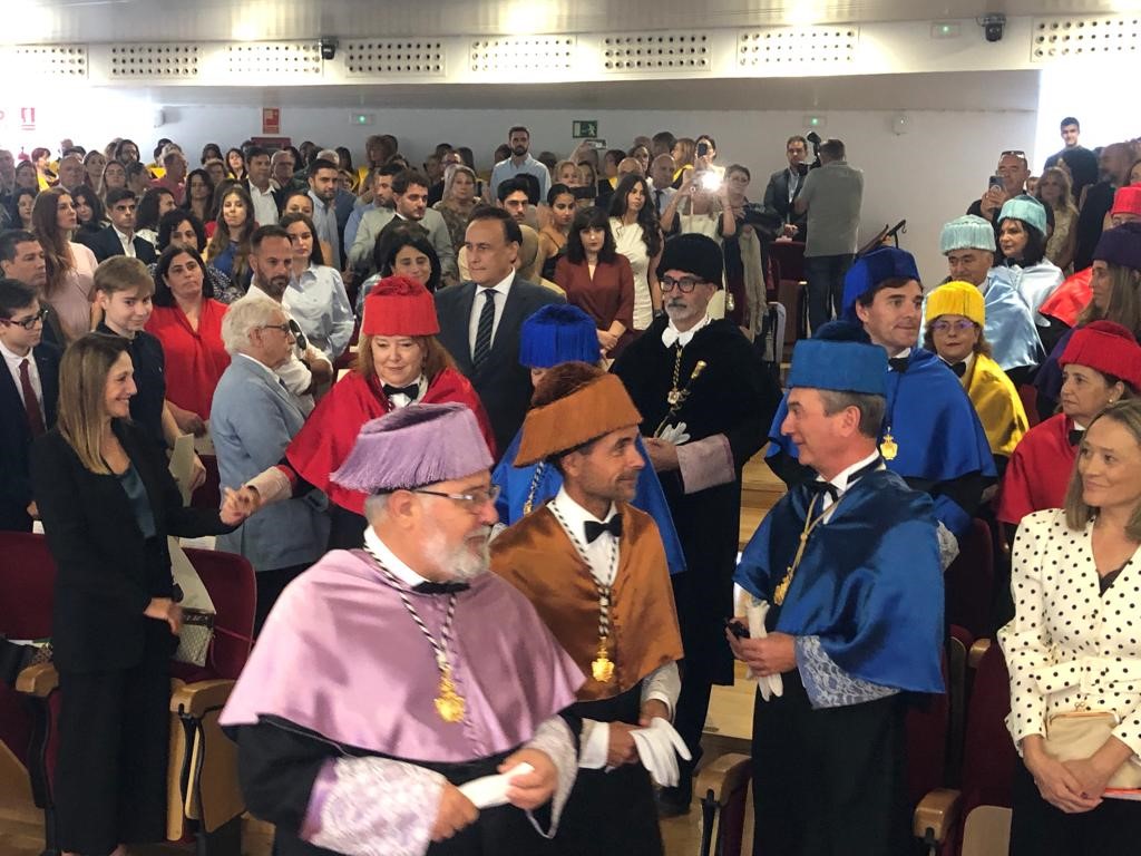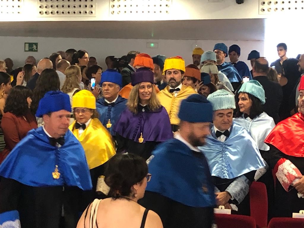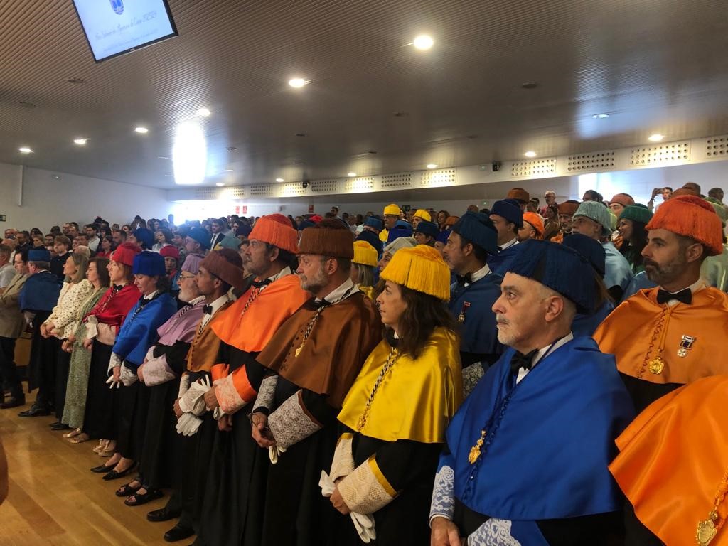 Un “GRACIAS en mayúscula” dedicado: “a la persona que nos limpia nuestro despacho, a la que nos pone el café con una sonrisa a las ocho de la mañana, a la profesora o al profesor que viene a dar la clase temprano cuando esa noche ha tenido que estar cuidando de su hijo pequeño, al bibliotecario que nos encuentra ese manual que buscábamos, al conserje de la facultad, a los estudiantes que son el alma de nuestra universidad y, especialmente, a los que jugáis el importante papel de defender vuestros derechos, el CEUCA, a nuestra gestora, al gabinete del Rector que viene hoy aunque sea festivo, a la coral que siempre nos llena de alegría con sus cánticos, a los decanos, a los directores, a la inspección general, a la defensora universitaria, a todos, a todas, también a los representantes de los trabajadores que nos recuerdan que mejorar la calidad de la universidad no debe estar reñido con mejorar las condiciones laborales de todos”. A la Junta de Andalucía, en este caso con la presencia de su consejero, y a todas las instituciones y entidades que colaboran con la Universidad de Cádiz, a la gerente y al personal de Administración y Servicios “por cuidar del dinero que es público, el dinero que nuestra sociedad pone en nuestras manos para emplearlo exclusivamente en los fines públicos para los que las universidades fueron creadas”.