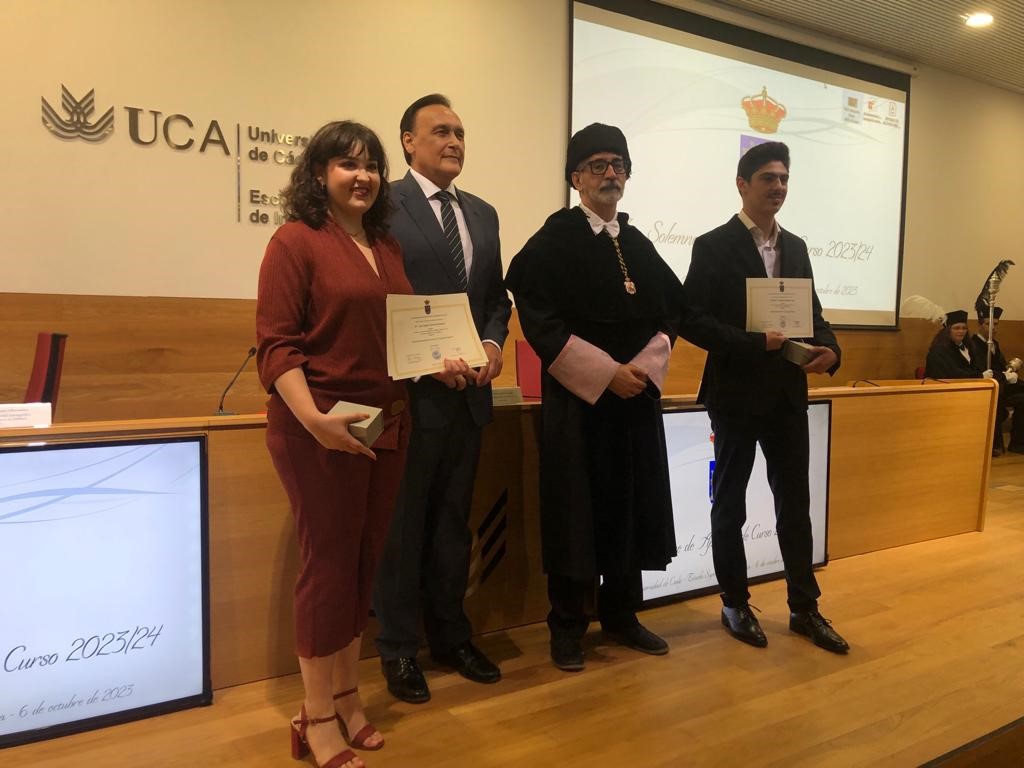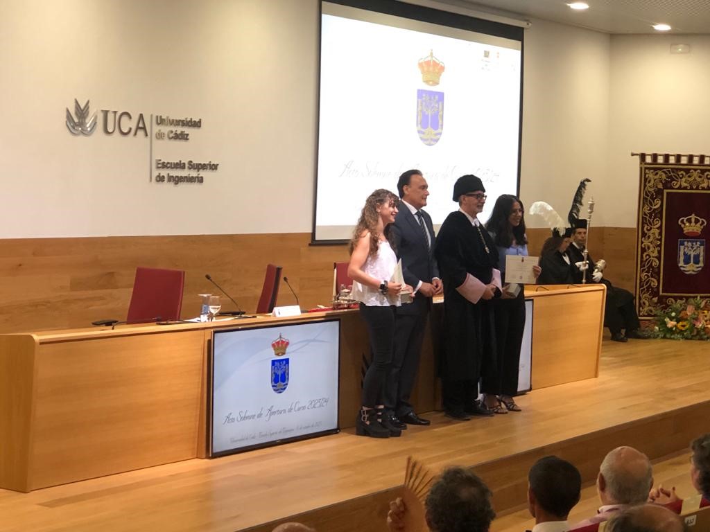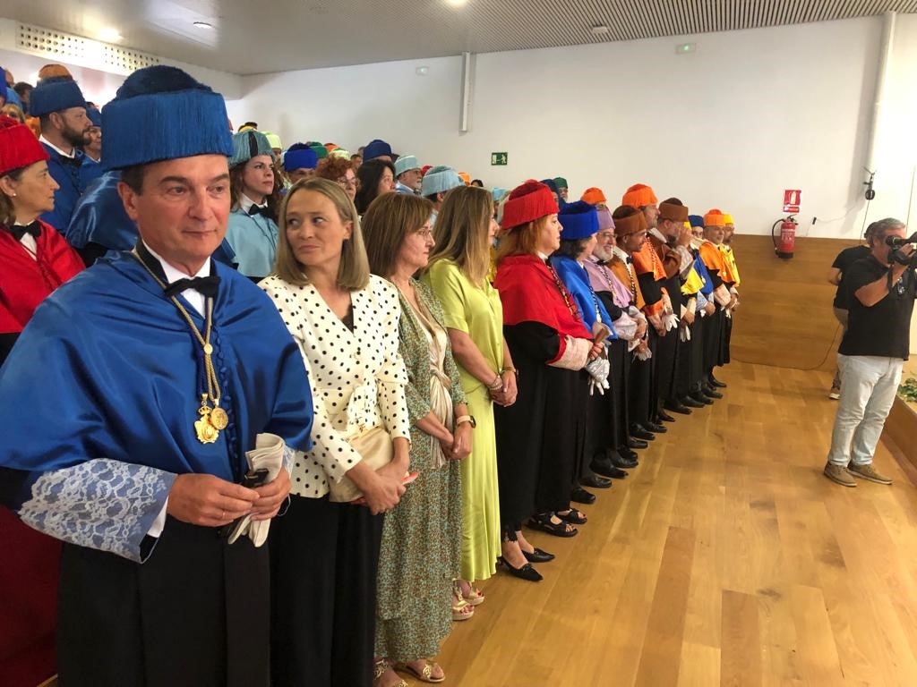 Francisco Piniella ha felicitado a los estudiantes premiados: “su ejemplo es un estímulo para toda la comunidad universitaria y, a la vez, el resultado del porqué de todos nuestros desvelos. Nos esforzamos para tener la recompensa de la excelencia de nuestro alumnado”. Asimismo, ha dado la enhorabuena tanto al secretario General en funciones por la exposición de los hitos más relevantes del pasado curso académico que en esta ocasión por primera vez se ha visibilizado “en un vídeo que sintetiza en menos de 365 segundos lo que hemos hecho en 365 días” y a la profesora Ana Bocanegra “por la claridad expositiva, por la profundidad argumental y por la idoneidad de la temática abordada. Lo sé por experiencia profesional y vital, el mar une continentes, países y territorios… y el inglés es un puente de comunicación e intercambio universal”.