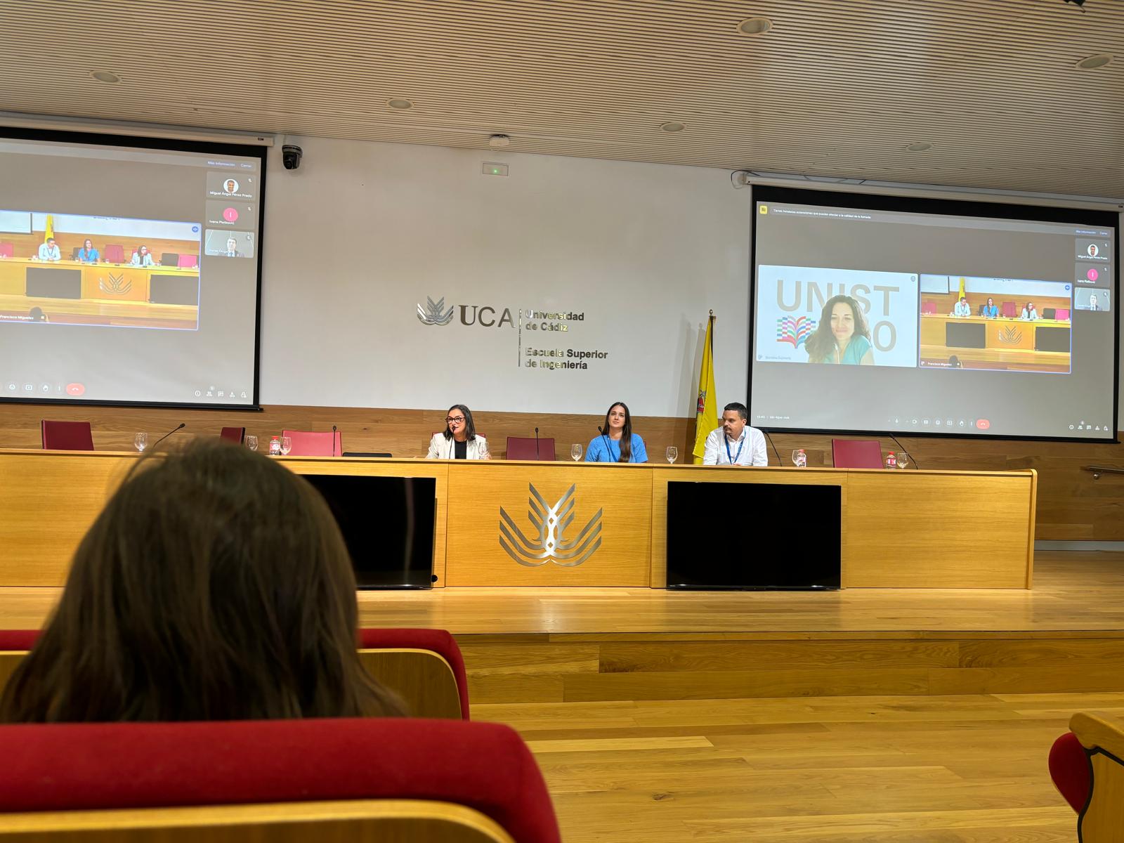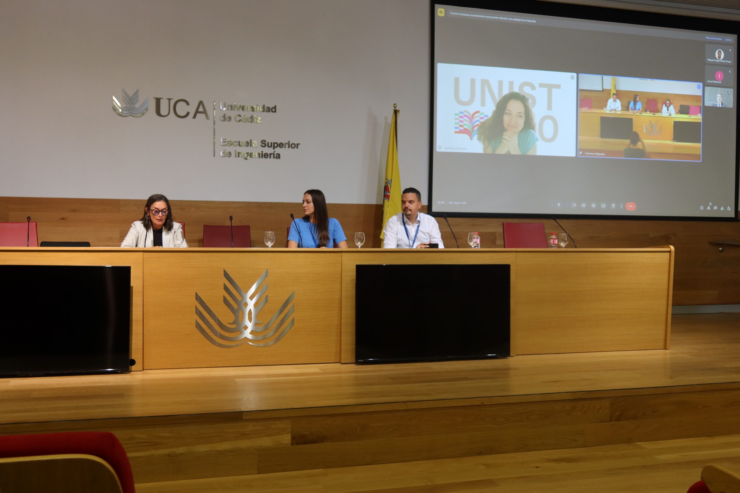 La vicerrectora de Internacionalización de la UCA, Marcela Iglesias, junto al director de la Escuela Superior de Ingeniería, Luis Lafuente, y en compañía online de la embajadora de Croacia en España, Nives Malenica, y de representantes del equipo rector de la Universidad de Split, ha dado la bienvenida a los más de 200 inscritos, con una ponencia en la que han remarcado la importancia de la internacionalización en el sistema universitario actual.