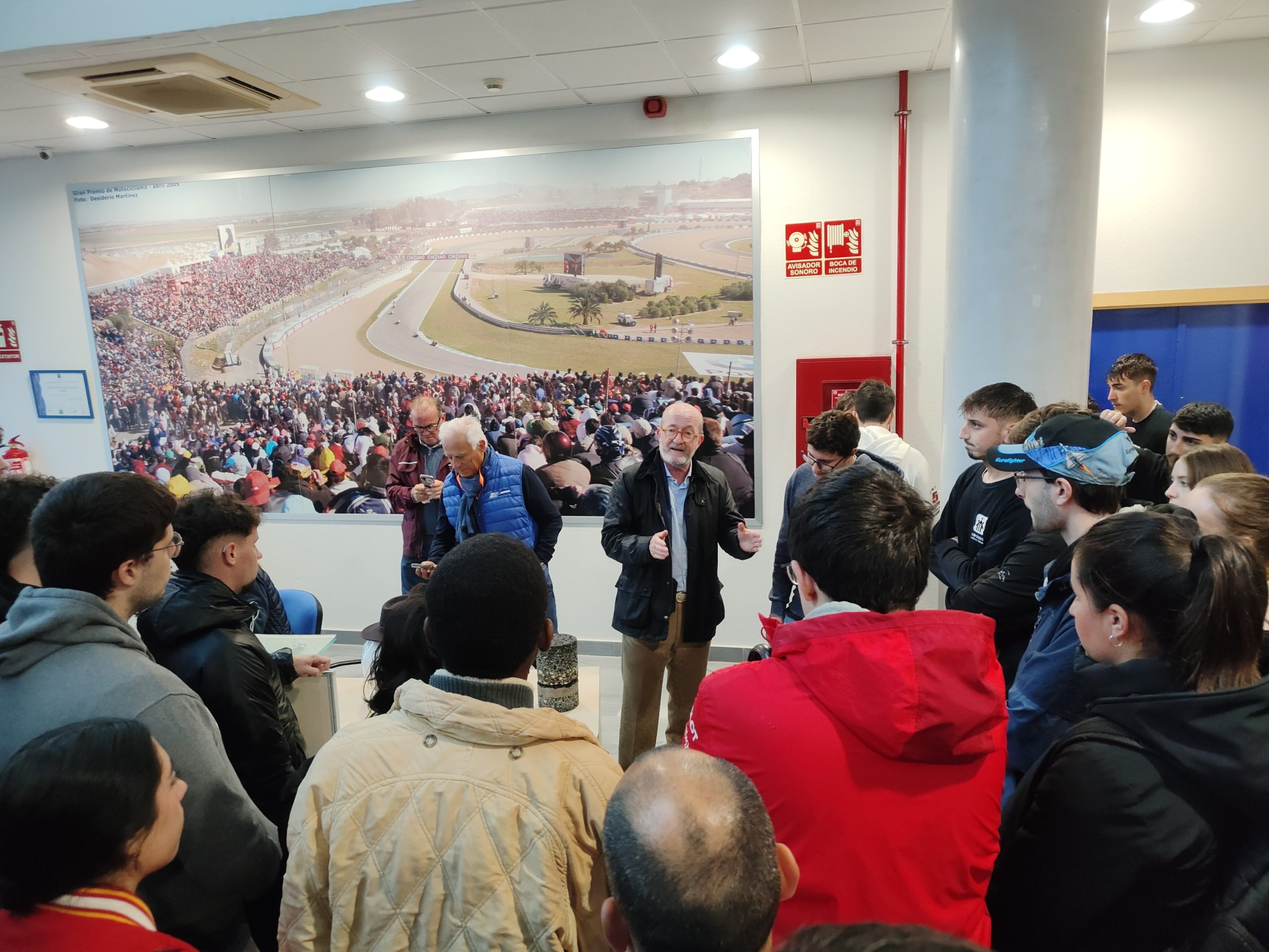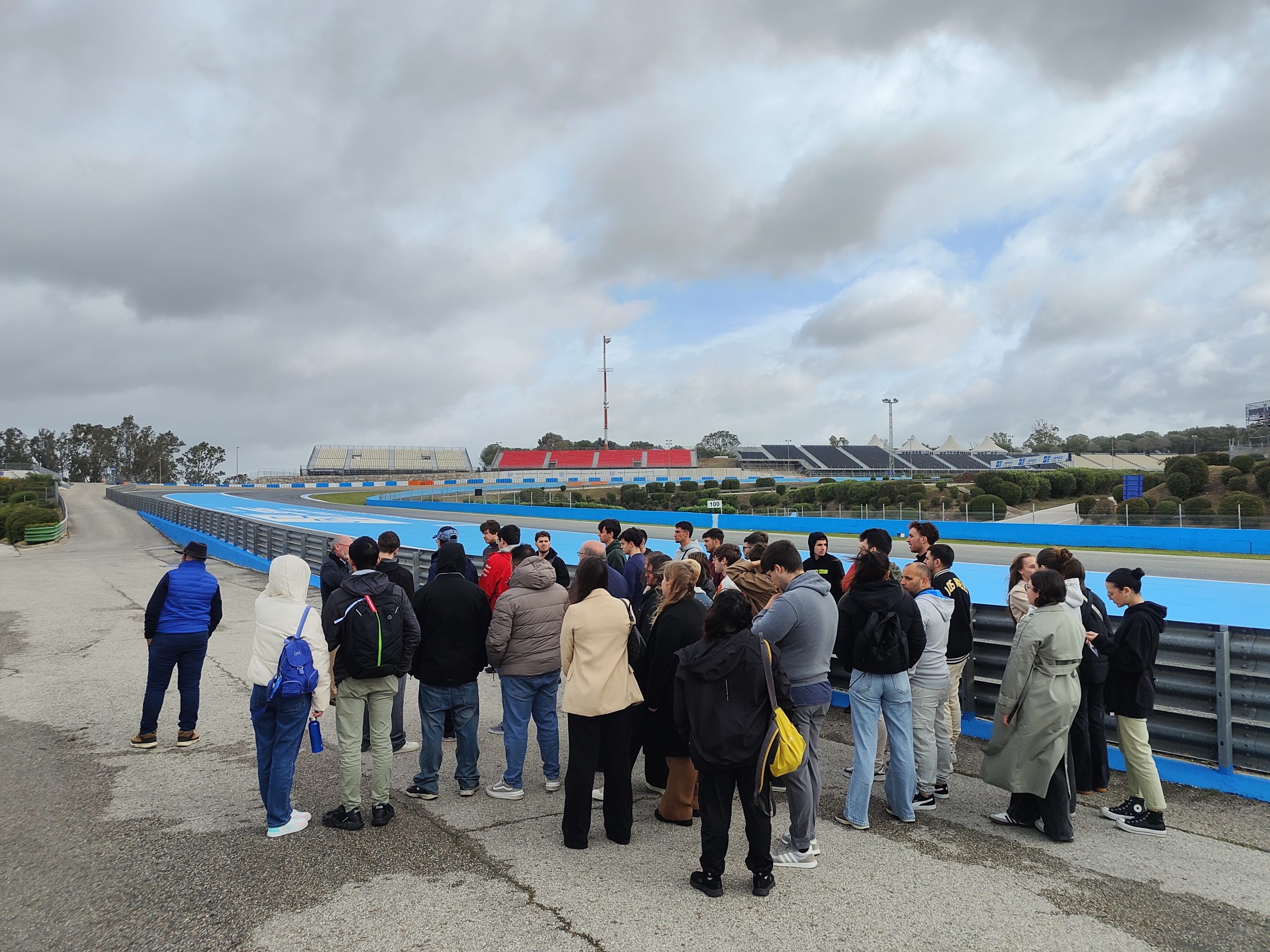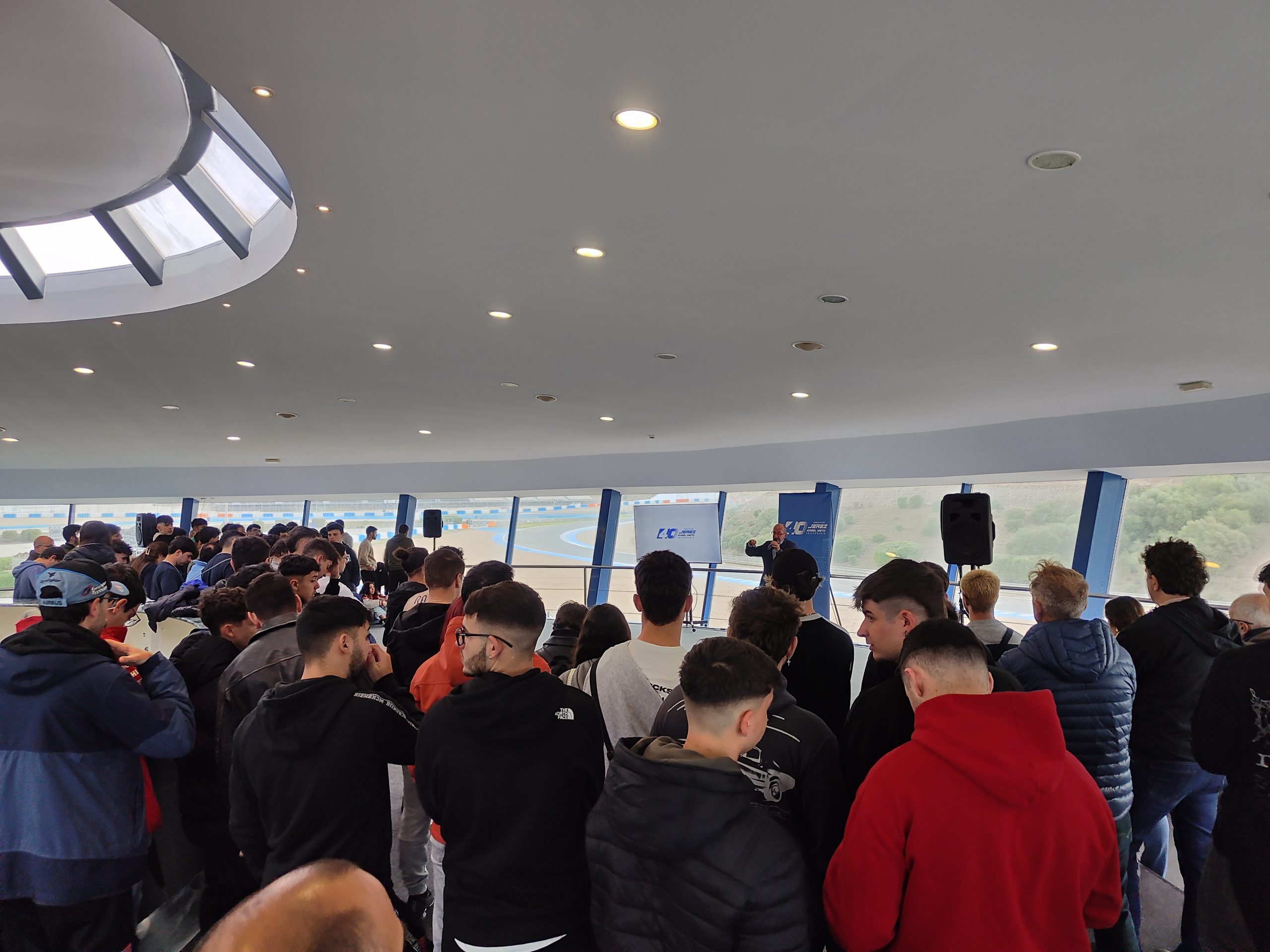 Durante la sesión, los estudiantes han tenido la oportunidad de conocer el funcionamiento interno de una competición real del Campeonato de España de Superbike (ESBK). De la mano del director del circuito, Cayetano Gómez, y del responsable de mantenimiento, Pablo Fernández, han recorrido distintas áreas del trazado, como el paddock o el pit lane, y han intercambiado impresiones con profesionales del ámbito de la automoción deportiva.