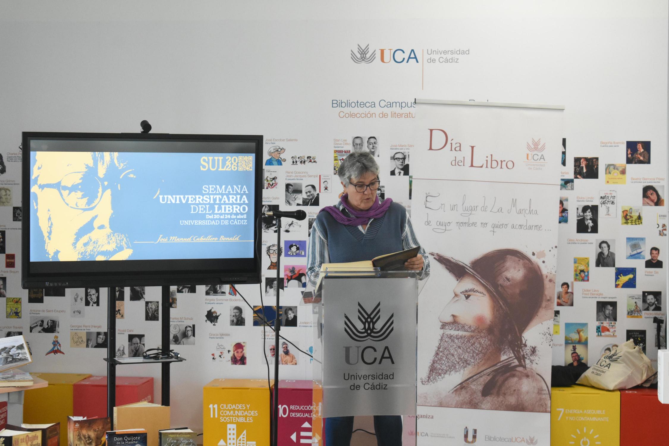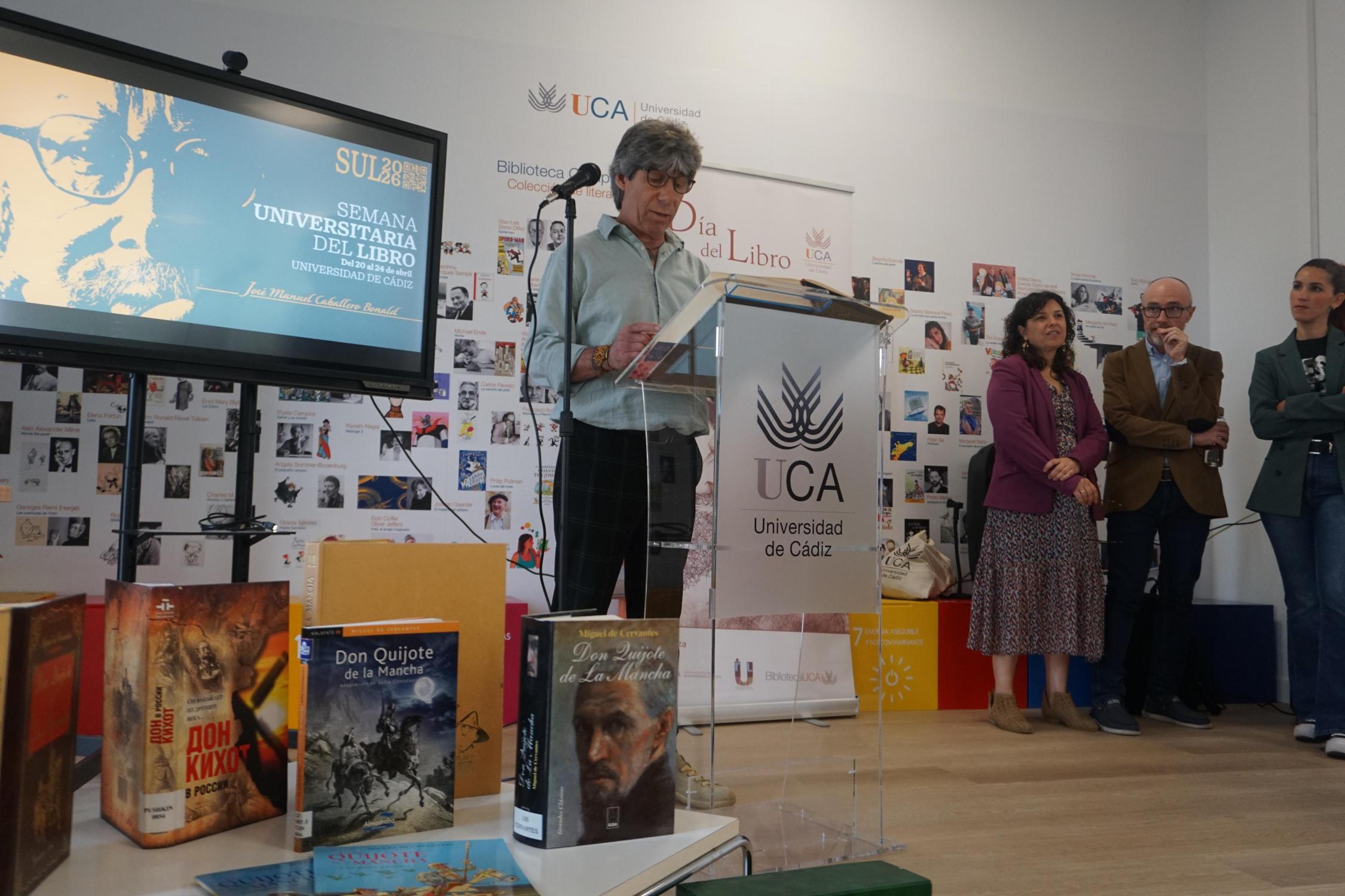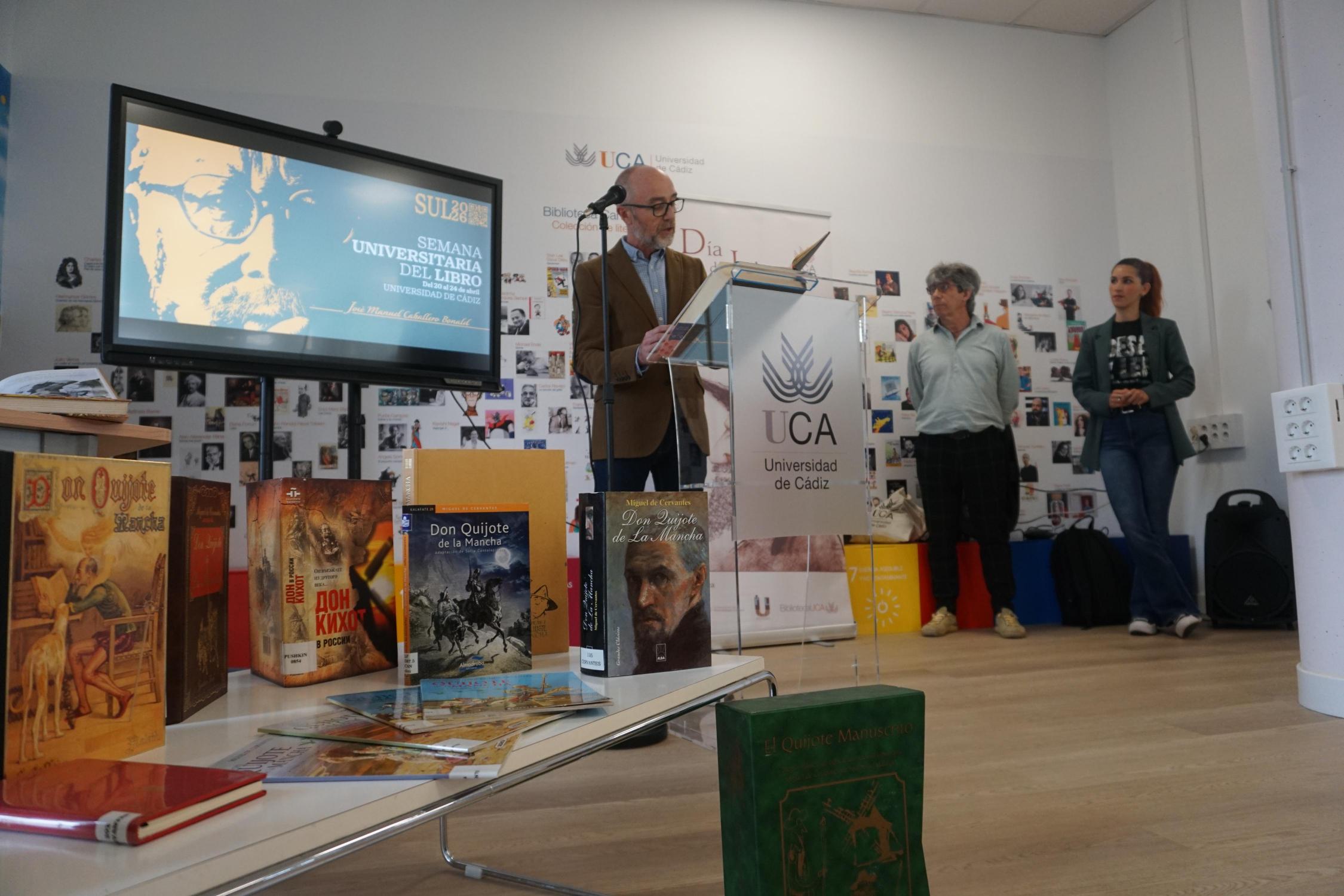 La Universidad de Cádiz ha celebrado este jueves el Día del Libro con la tradicional lectura institucional de El Quijote, una de las obras más representativas de la literatura española y universal, escrita por Miguel de Cervantes. Este acto se ha desarrollado en la biblioteca del Campus de Puerto Real, con la participación activa de la comunidad universitaria.
