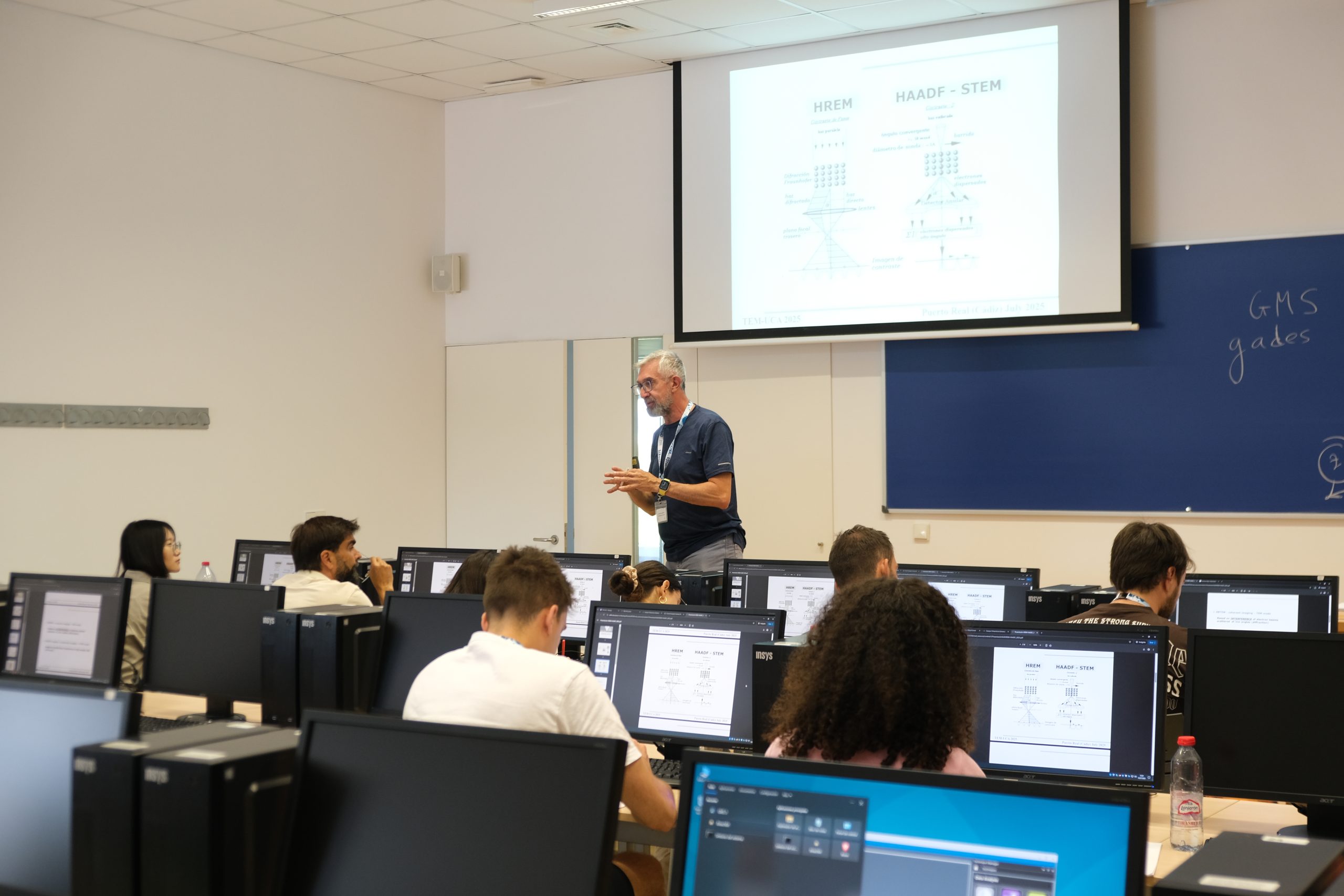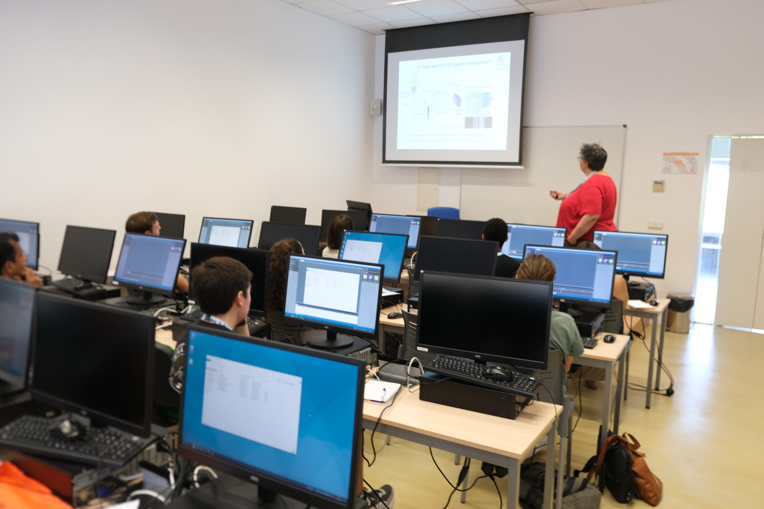 Un pilar fundamental del encuentro han sido los laboratorios prácticos, donde los participantes se han dividido en grupos para formarse en el uso de diversas aplicaciones de software en el campo de la TEM. Los temas cubiertos en estas sesiones han incluido el Procesamiento de Imágenes, las Simulaciones de Imágenes, el Modelado de Nanopartículas, la Espectroscopia de Pérdida de Energía de Electrones (EELS), la Espectroscopia de Dispersión de Energía de Rayos X (EDX) y la Tomografía Electrónica. Además, han destacado sesiones como la de Cristalografía Electrónica Asistida por Computadora, impartida por José A. Pérez-Omil, y las dedicadas a la Tomografía Electrónica y EDX.