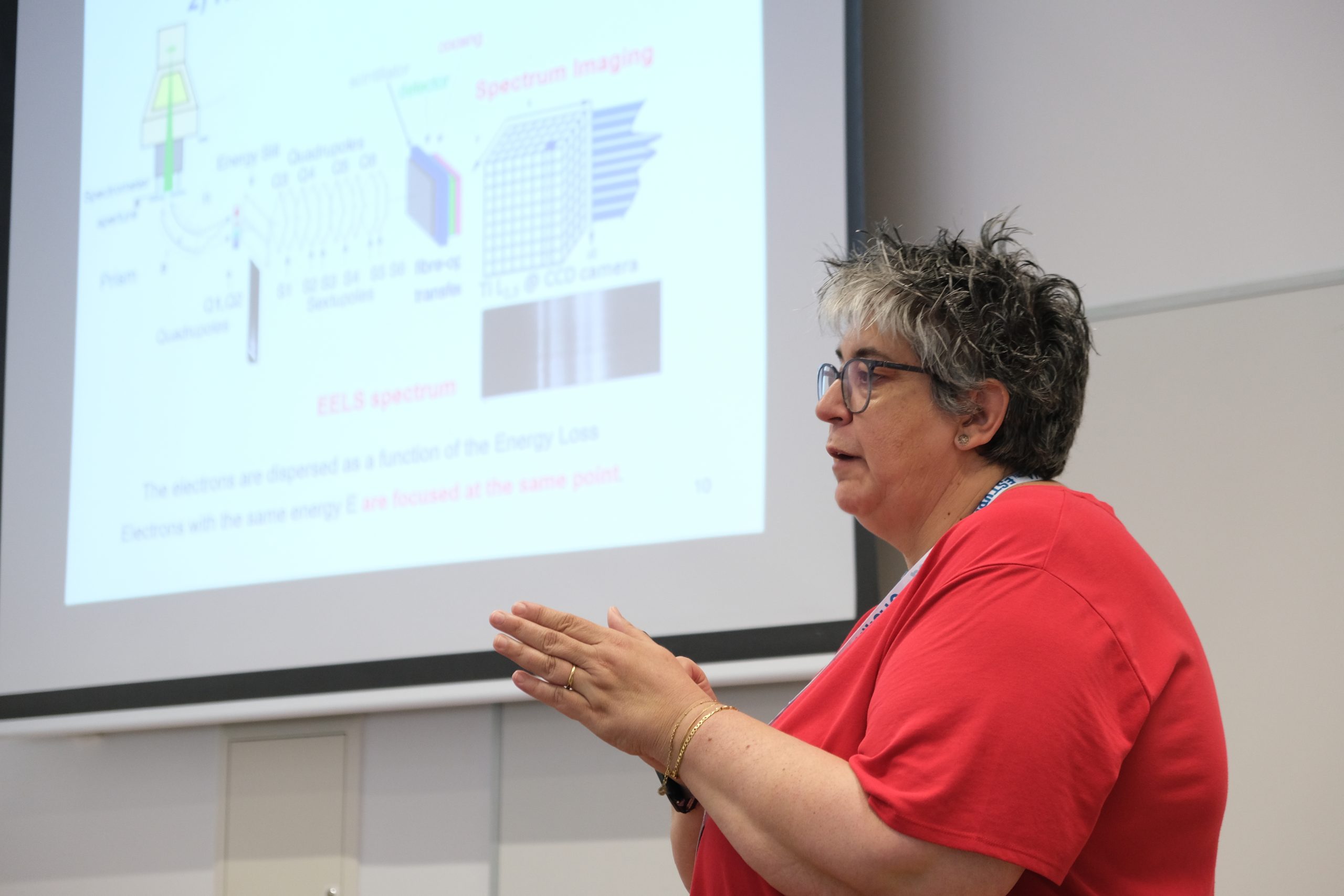 Entre los ponentes más importantes que han participado en esta edición se encontraban Raúl Arenal, con una introducción a la Microscopía Electrónica de Barrido/Transmisión; Gabriel Sánchez-Santolino, quien ha explorado nuevas perspectivas en materiales con 4D-STEM de resolución atómica; Caterina Ducati, que ha profundizado en la exploración de dispositivos basados en perovskitas con Microscopía Electrónica de Barrido y Transmisión; y Odile Stéphan, quien se ha centrado en las aplicaciones de EELS en la ciencia de materiales, resaltando las nuevas oportunidades que ofrece la monocromación del haz de electrones.