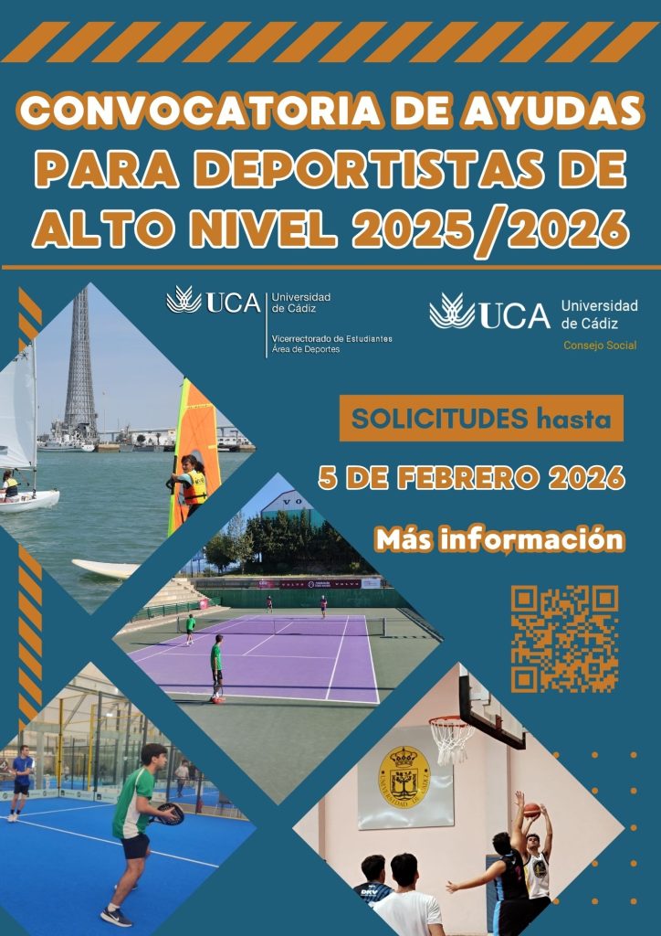 La Universidad de Cádiz ha abierto la convocatoria de ayudas para Deportistas de Alto Nivel correspondientes al curso académico 2025/2026. El plazo de presentación de solicitudes permanecerá abierto hasta el 5 de febrero y la convocatoria contempla la concesión de diez ayudas económicas, por un importe de 500 euros cada una, en régimen de concurrencia competitiva.