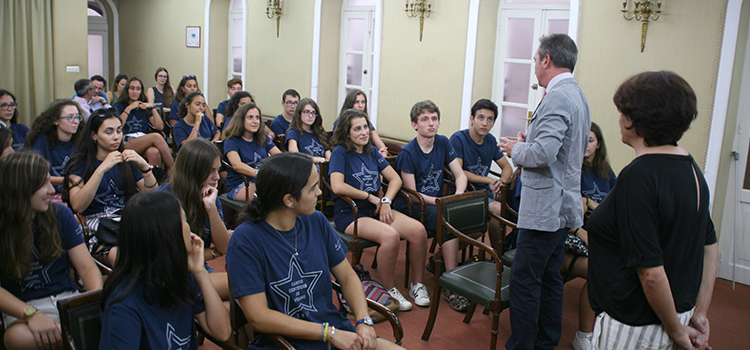 El alumnado participante en el II Campus Científico de Verano CEI·Mar, iniciativa de la Fundación Española para la Ciencia y la Tecnología (FECYT) y el Ministerio de Educación, Cultura y Deporte, que cuenta con el apoyo de Obra Social La Caixa, ha sido recibido hoy por el rector de la Universidad de Cádiz y presidente de la Fundación Campus de Excelencia Internacional del Mar (CEI·Mar), Eduardo González Mazo, que ha estado acompañado por la vicerrectora de Alumnado, Concha Valero, y por Javier Benavente, responsable de esta iniciativa en la Universidad de Cádiz y director general de Investigación de la misma.
