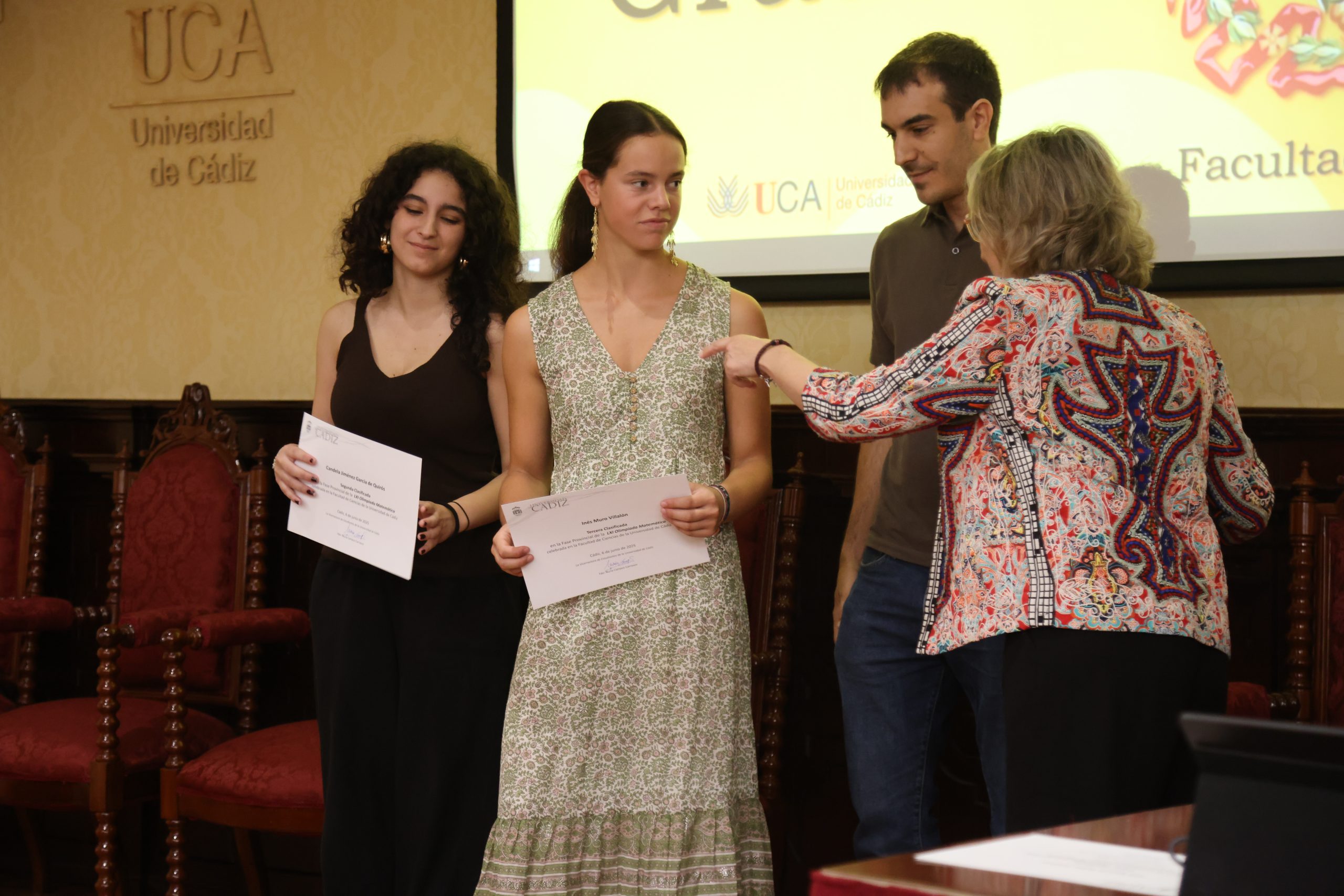 A la hora de dirigirse al alumnado presente en el Salón de Grados de la Facultad de Medicina, Nuria Campos les ha recordado que “el premio os convierte no sólo en embajadores de la Universidad sino, sobre todo, en embajadores del pensamiento libre y de la ciencia”. “Estamos en vuestras manos, tenéis que defender el saber y el pensamiento libre”, les ha exhortado, para también animarlos a seguir estudiando en la Universidad de Cádiz, “que tiene mucho que ofreceros.”.
