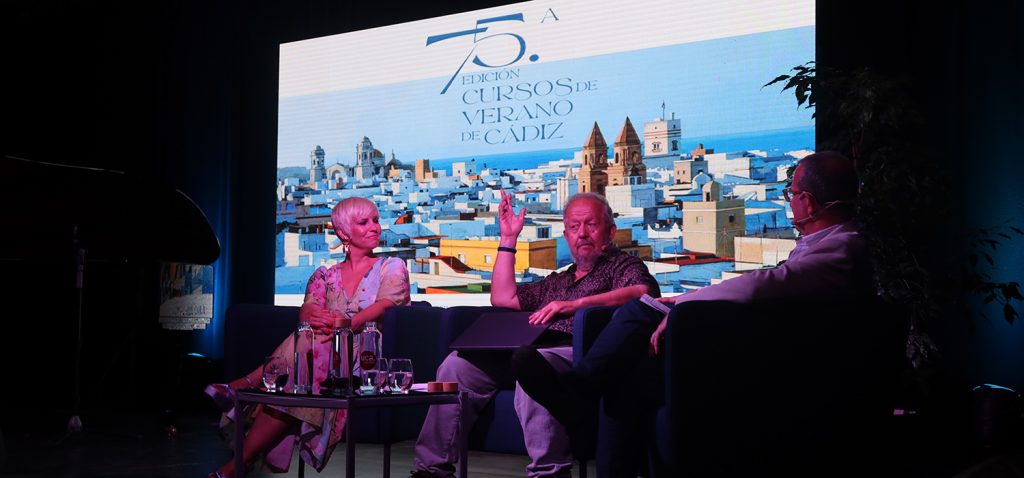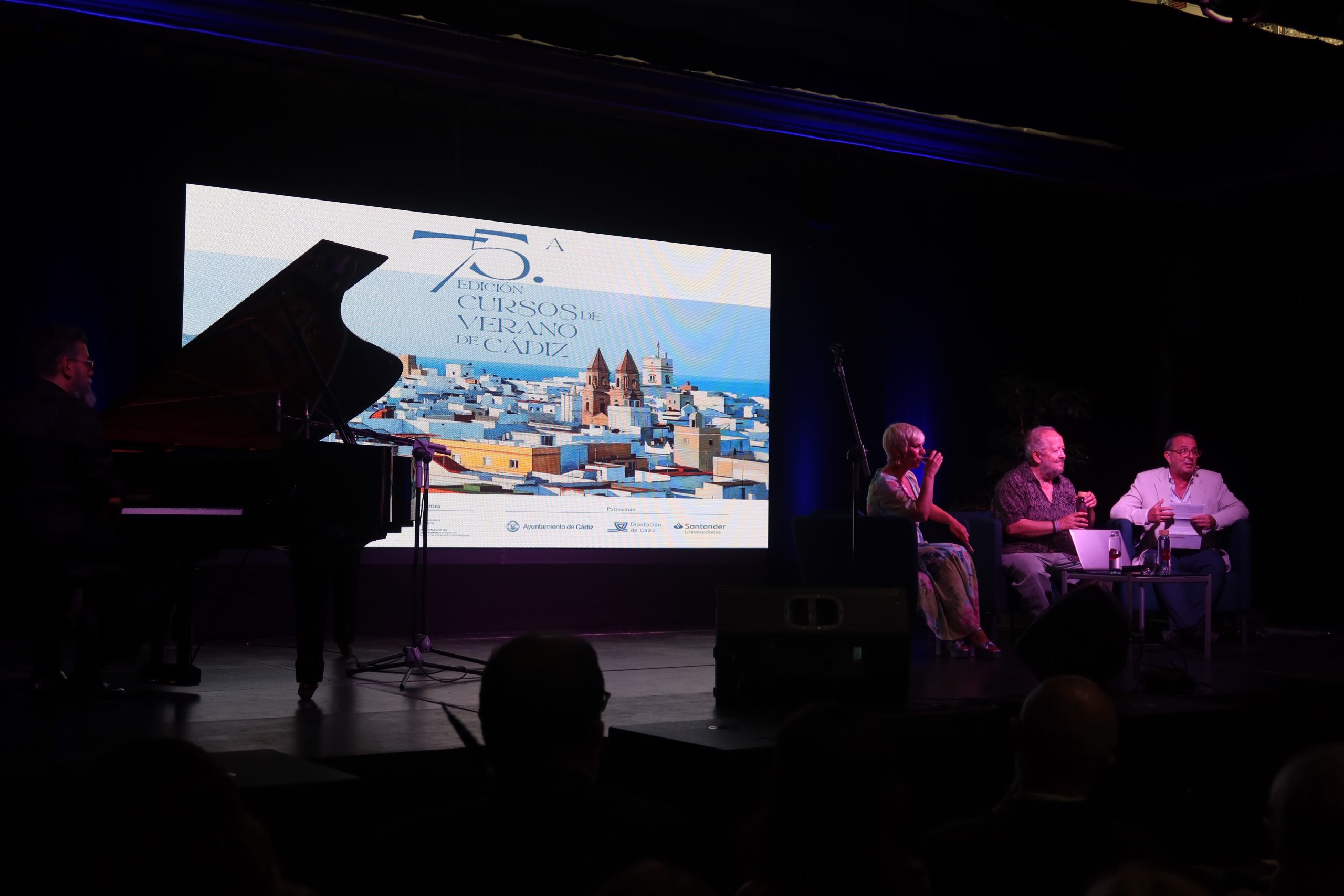 La 75ª edición de los Cursos de Verano de la Universidad de Cádiz, una de las ofertas académicas estivales más consolidadas del país, ha arrancado este lunes con un acto inaugural que ha combinado la reivindicación histórica, el acercamiento cultural y la emoción artística. El Edificio Constitución 1812, sede habitual de los seminarios, ha acogido una charla-recital en homenaje a Carlos Cano, en el año en que se cumple el 25º aniversario de su fallecimiento, en un evento que ha unido música, palabra, historia y compromiso social. La actividad ha contado con la participación del catedrático Alberto Romero, el poeta y periodista Juan José Téllez y la reconocida artista Pasión Vega, y ha reunido a un numeroso público que ha llenado el aforo del patio del antiguo Aulario La Bomba.