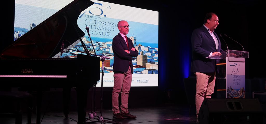 Por su parte, el vicerrector ha puesto en valor el simbolismo de la imagen elegida para el cartel anunciador de esta edición, obra de Cecilio Chaves: una vista de Cádiz desde el edificio del Rectorado. “Eso es lo que queremos transmitir”, ha afirmado, “una visión de la ciudad desde su Universidad, una programación cultural intensa, integradora y comprometida con nuestro entorno”. Sánchez ha agradecido también el esfuerzo y la implicación del personal técnico de su Vicerrectorado, “no solo con los Cursos de Verano, sino con todas las iniciativas culturales que impulsa la UCA”.