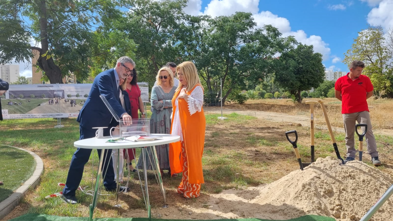 El rector de la Universidad de Cádiz, Francisco Piniella, junto a la alcaldesa de Jerez, Mamen Sánchez, la delegada territorial de Desarrollo Educativo y Formación Profesional y de Universidad, Isabel Paredes, y el vicerrector de Digitalización e Infraestructuras, Carlos Rioja, ha presidido hoy el acto de colocación de la primera piedra del segundo aulario del Campus de Jerez. Este edificio de nueva planta llevará el nombre del catedrático Carmelo García Barroso y su construcción figura dentro del plan de infraestructuras de la UCA dentro de una estrategia de fortalecimiento y mejora de las instalaciones en sus cuatro campus universitarios.