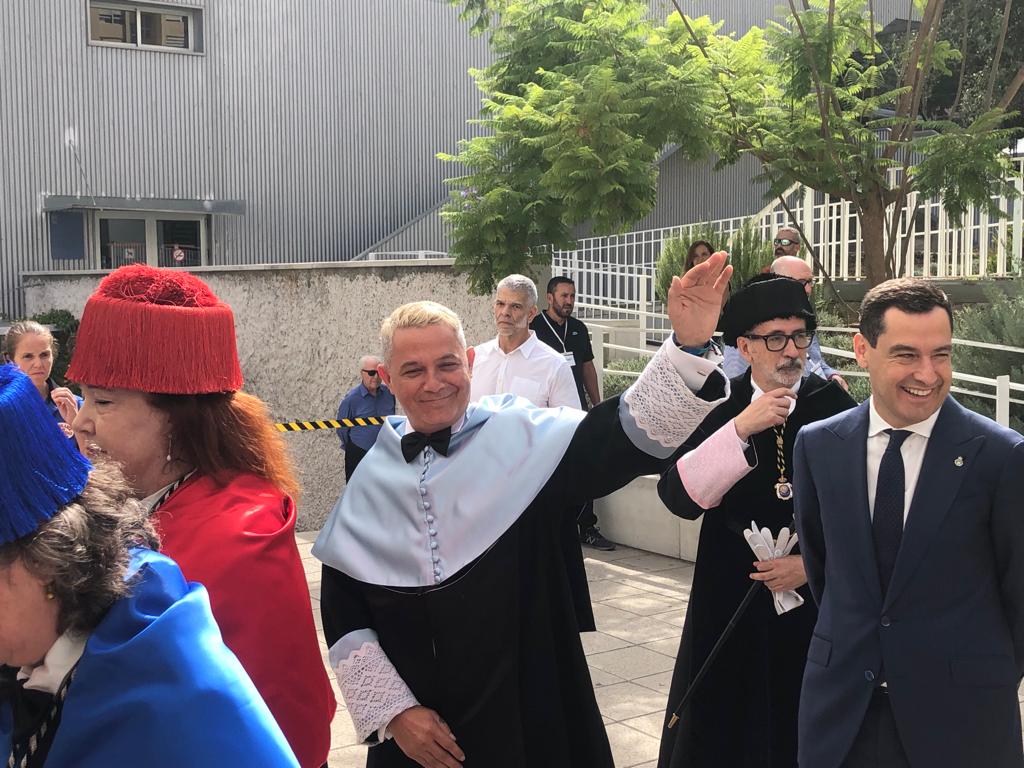 Juan Manuel Moreno ha asegurado que “la Universidad de Cádiz también se doctora hoy, una vez más, en esa otra forma de sabiduría que está en la calle, en el aire, en las canciones. En el rabioso presente del arte. Al prestigiar la figura y la obra de Alejandro Sanz, eleva también, aún más, su propio rango. Y lo hace, además, en el año en que Andalucía acoge, en un hito histórico de enorme resonancia mundial, los Latin Grammys”, donde Alejandro Sanz ha tenido un protagonismo hasta ahora insólito en la música latina. Con este acto solemne, ha concluido, “es todavía un poquito más andaluz y más gaditano. Y nosotros, sus paisanos, un poquito más universales”.