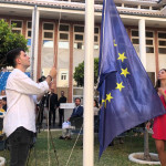 La Universidad de Cádiz celebra hoy el Día de Europa 2023. El programa se ha inaugurado con la izada de la bandera europea e interpretación del himno de Europa en la sede del Vicerrectorado de Internacionalización en el Campus de Cádiz.