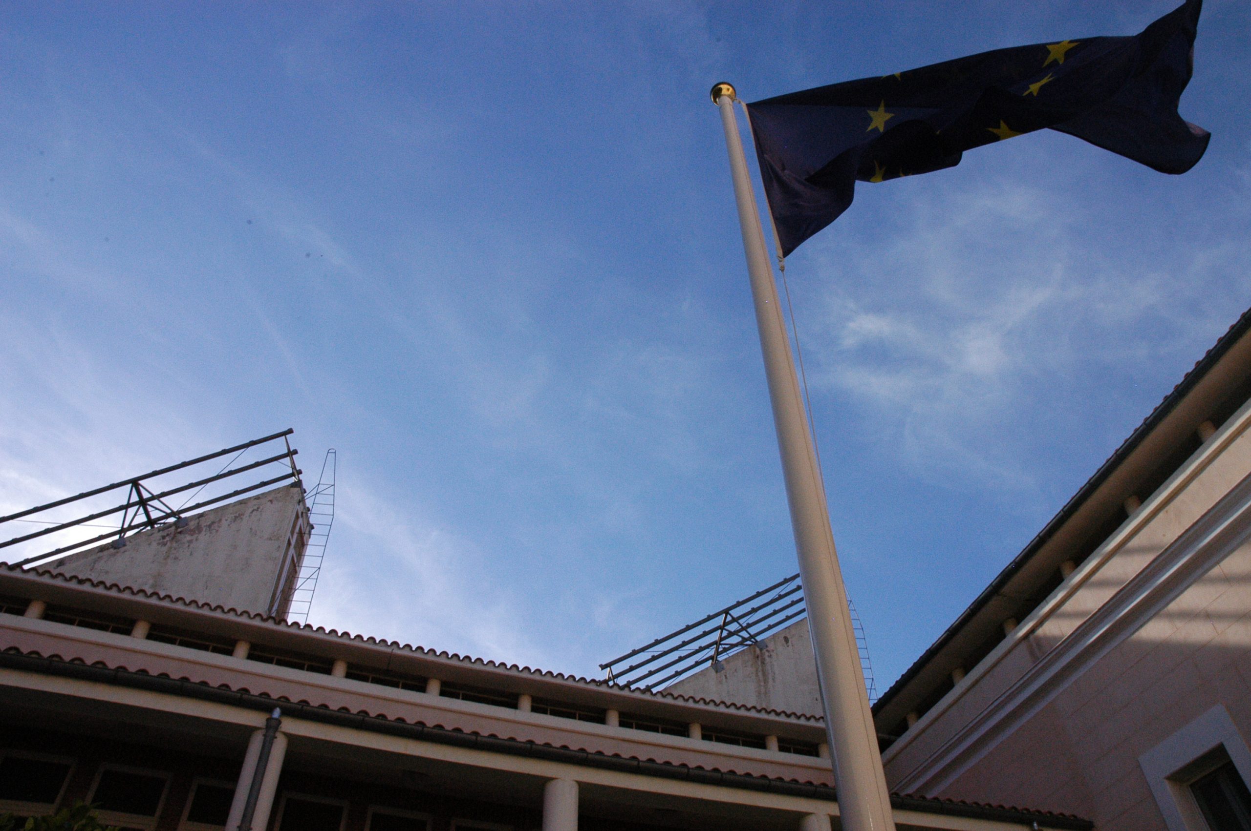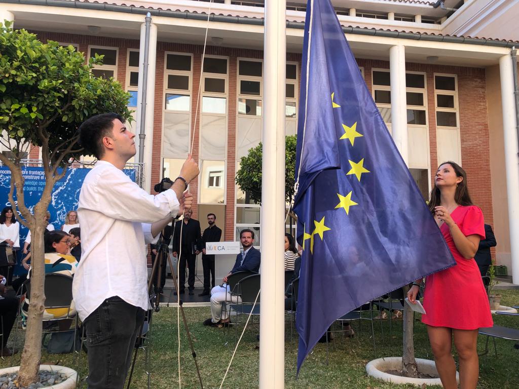 La Universidad de Cádiz celebra hoy el Día de Europa 2023. El programa se ha inaugurado con la izada de la bandera europea e interpretación del himno de Europa en la sede del Vicerrectorado de Internacionalización en el Campus de Cádiz.