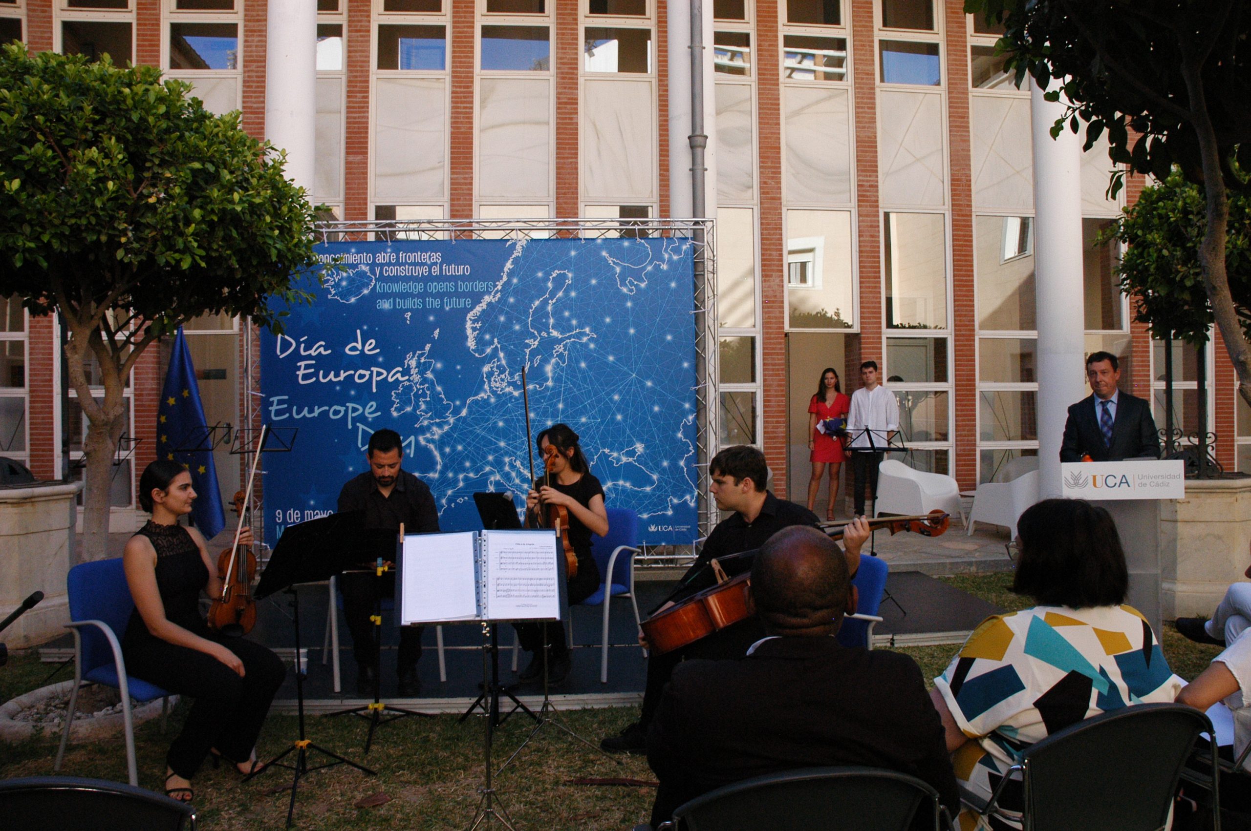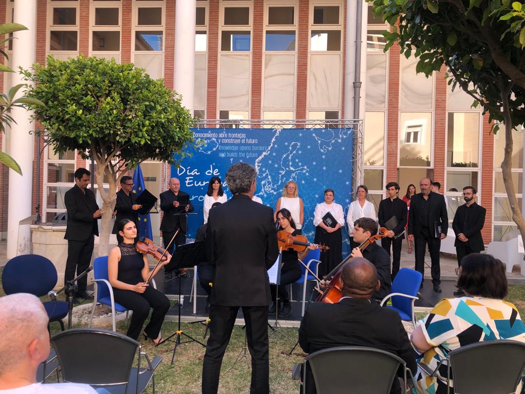 El acto , que ha estado moderado por el técnico del Vicerrectorado de Internacionalización, David Sánchez, ha estado acompañado por la actuación del cuarteto de cuerda y coro Nova Mvsica que han interpretado varias piezas alusivas al proyecto europeo.