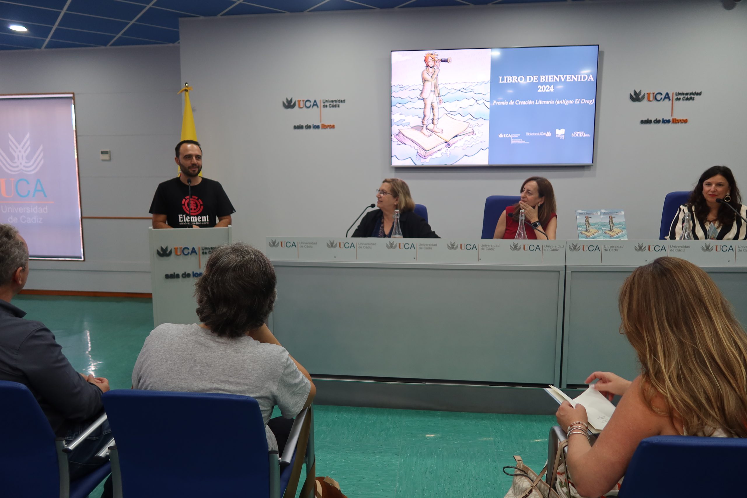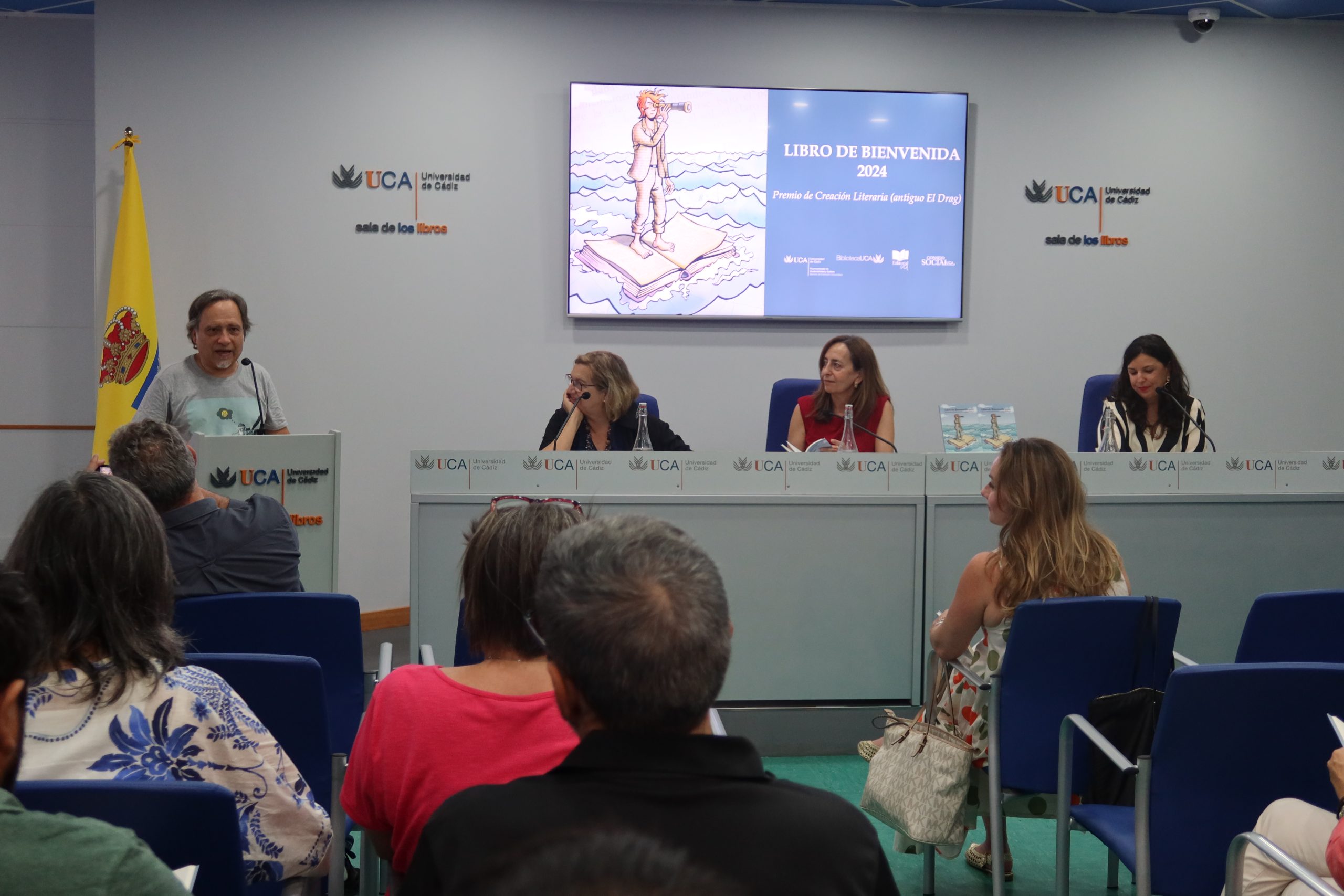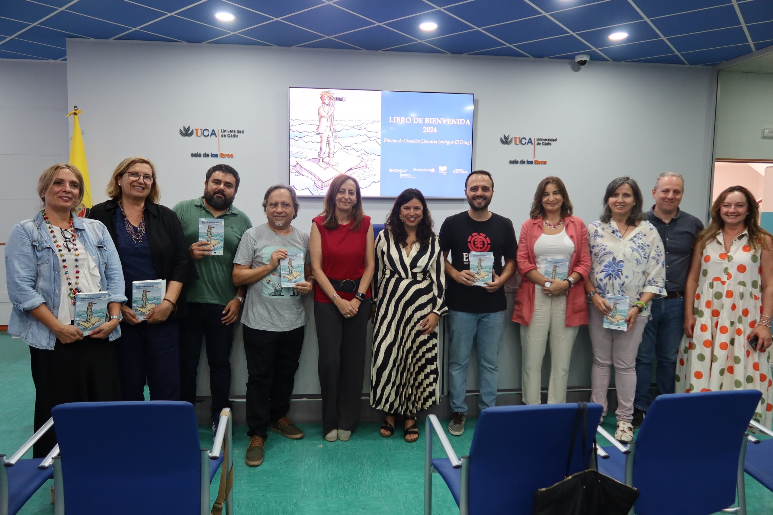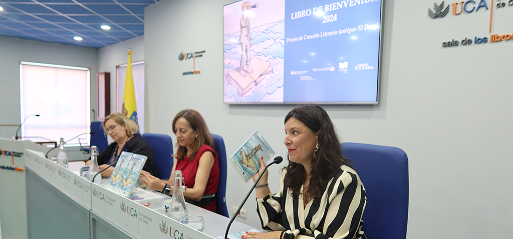 La Universidad de Cádiz ha presentado, en la sala de Los Libros del edificio Andrés Segovia, el Libro de Bienvenida de la UCA, que se repartirá al nuevo alumnado de este curso. El acto ha contado con la presencia de la vicerrectora de Investigación y Transferencia, Mª Jesús Ortega, la directora General de Cultura, Ester Trigo, y la consejera del Consejo Social de la UCA, Rita Benítez.
