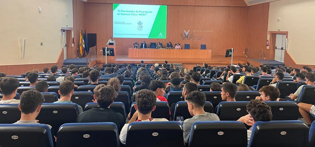 El salón de Actos de la Facultad de Ciencias de la Universidad de Cádiz ha acogido una jornada dedicada a presentar al estudiantado y profesorado el Plan Andaluz de Prescripción de Ejercicio Físico (PAPEF) y su implementación a través de las Unidades Activas de Ejercicio Físico (UAEF), una iniciativa impulsada por la Junta de Andalucía.